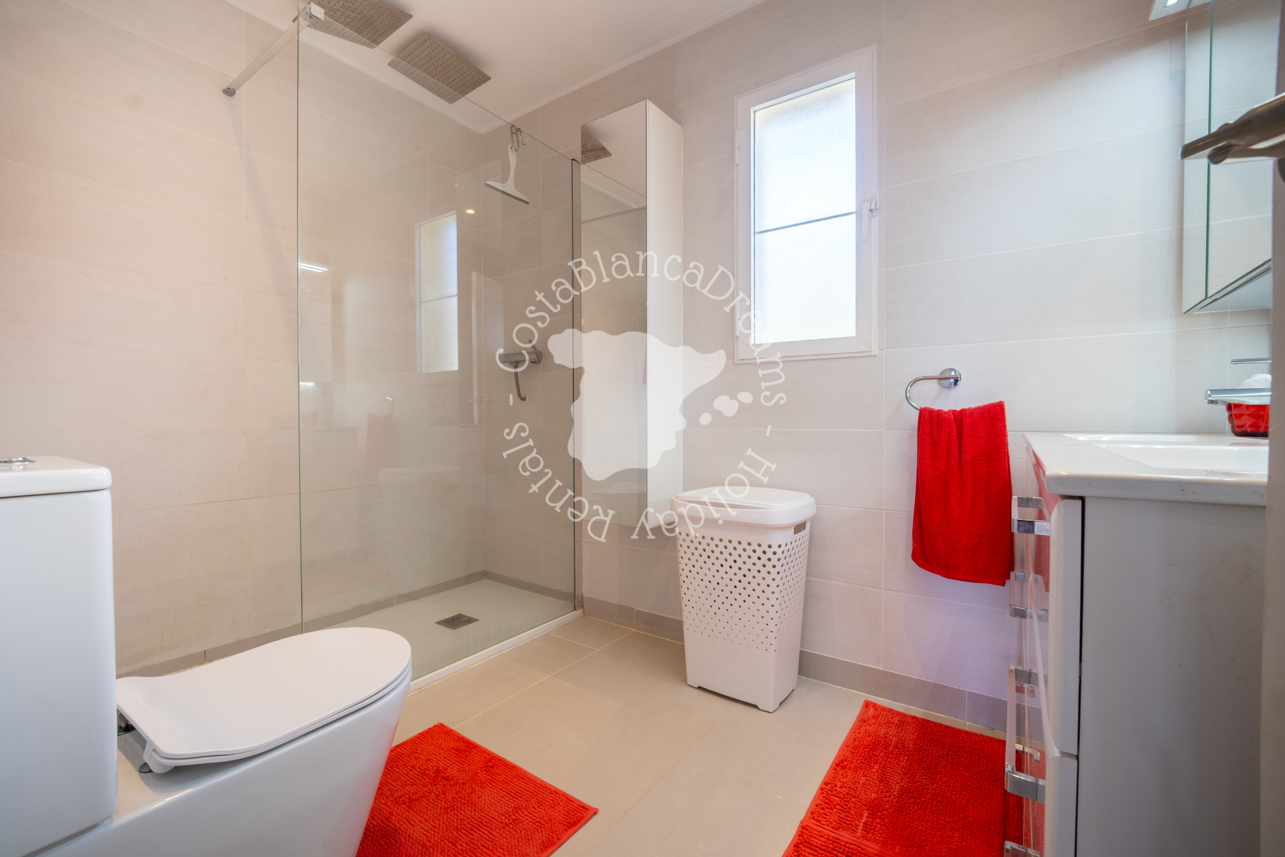 Die Master Suite verfügt über ein eigenes Bad mit einer schönen ebenerdigen Dusche und einem Waschbecken. Das Hauptschlafzimmer bietet ein Doppelbett, eine große Kommode auf dem Flur und eine Klimaanlage. Das zweite Schlafzimmer bietet auch ein Doppelbett und eine Klimaanlage mit einem Badezimmer mit Dusche auf dem Flur.