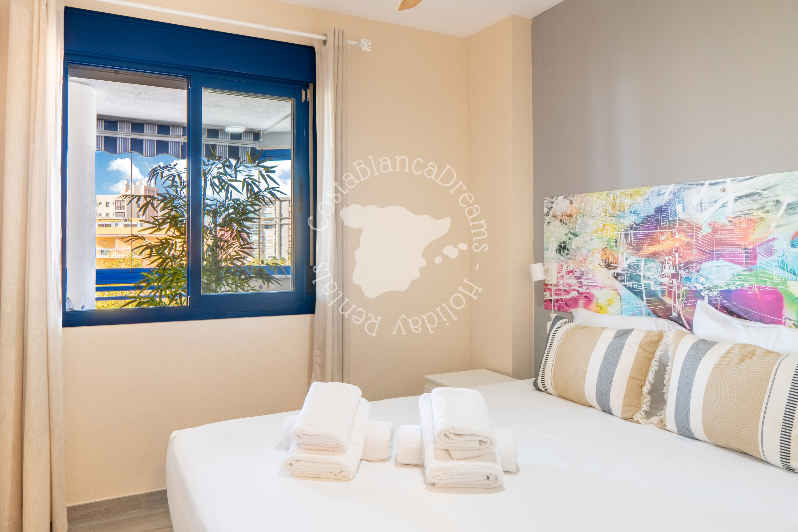 Turquesa Beach ist ein helles und einladendes Apartment mit 3 Schlafzimmern im 4. Stock, nur 200 Meter vom Hafen, den Stränden und Restaurants von Calpe entfernt. Mit seitlichem Blick auf das Meer, den Hafen von Calpe und den berühmten Peñón de Ifach genießt dieses nach Süden ausgerichtete Apartment das ganze Jahr über viel Sonnenschein und ist somit auch im Winter ein idealer Rückzugsort. Die Anlage verfügt über einen großen Gemeinschaftspool mit Springbrunnen und separatem Kinderbecken und bietet so eine entspannende Atmosphäre für Jung und Alt.