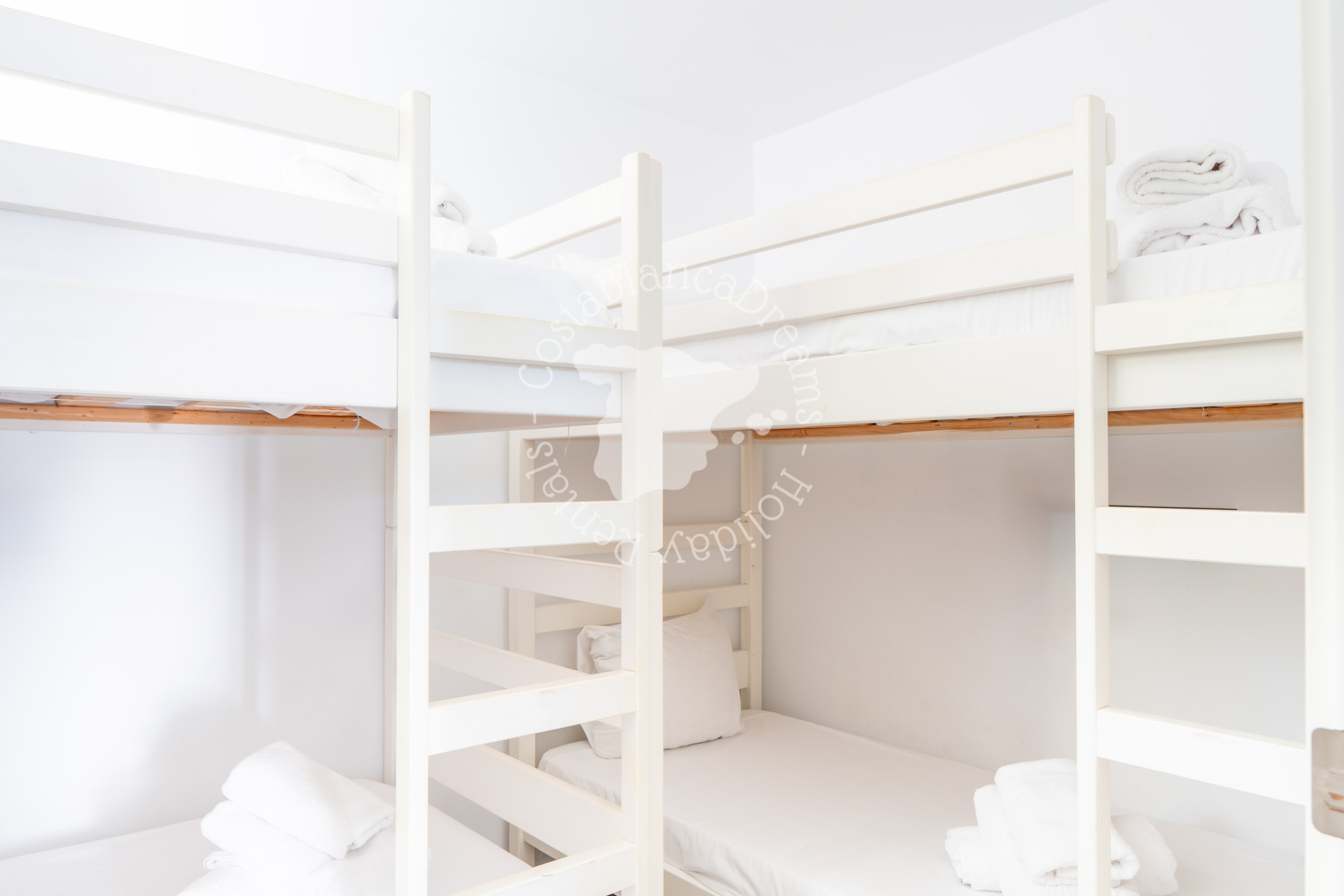 Die beiden anderen Schlafzimmer sind beide klimatisiert und teilen sich ein Badezimmer auf dem Flur. Ein Schlafzimmer hat zwei Einzelbetten und das andere kleine Schlafzimmer hat zwei Etagenbetten.