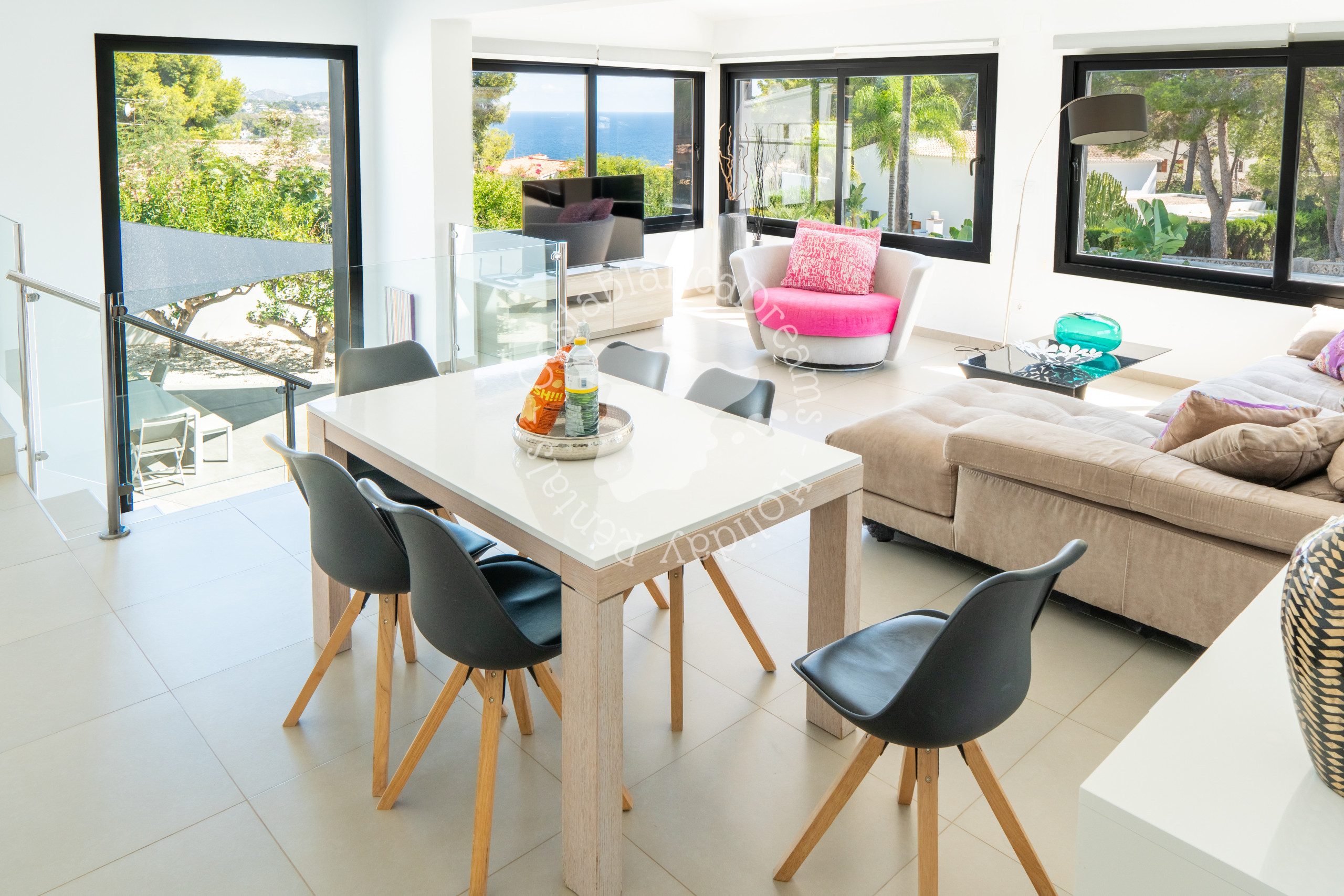 Brauchen Sie einen Moment für sich? Das gemütliche Wohnzimmer mit Meerblick ist dafür perfekt. Von hier aus haben Sie auch Zugang zu einem großzügigen Balkon, wo Sie einen leckeren Cocktail genießen können!