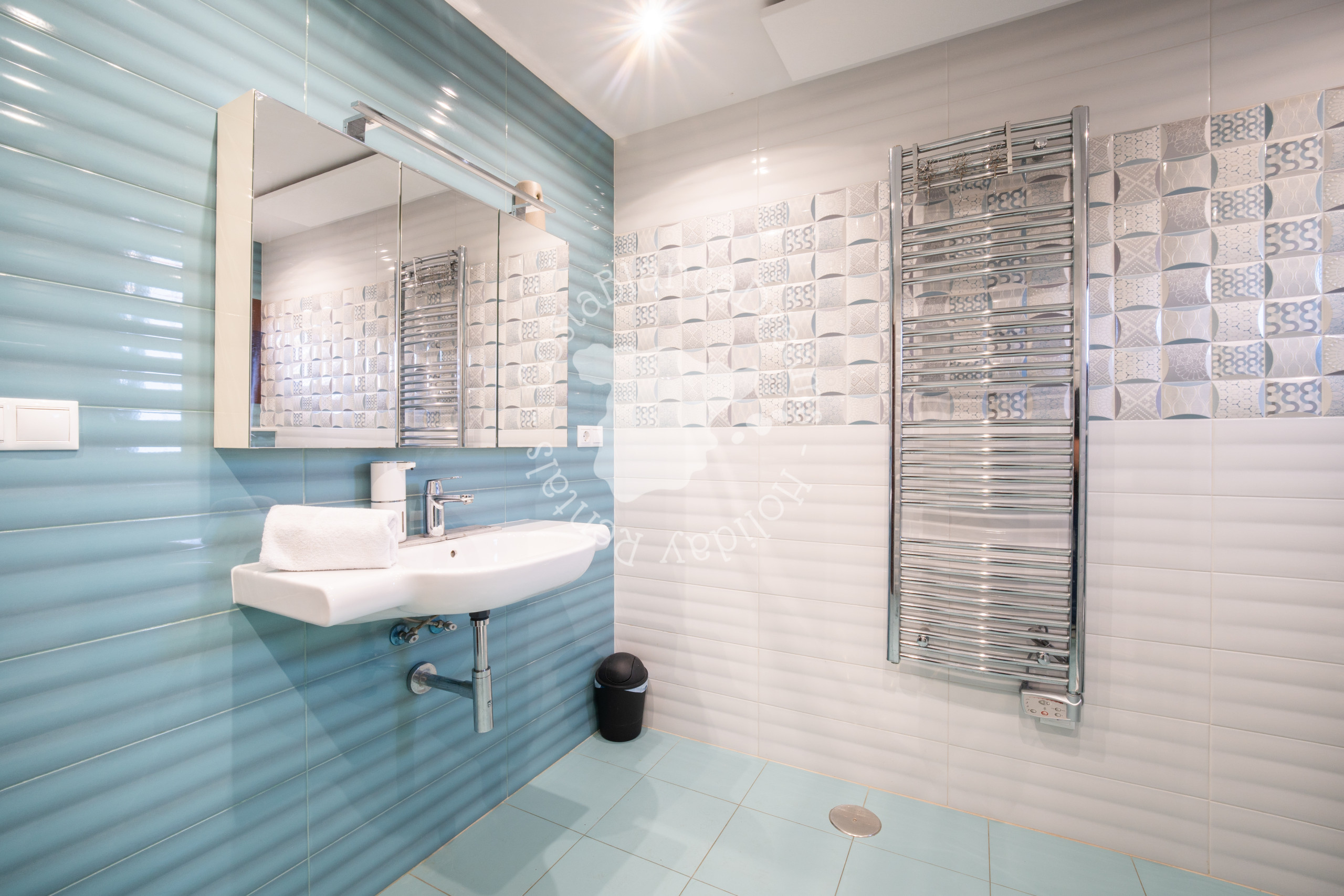 Die beiden anderen Schlafzimmer sind beide klimatisiert und teilen sich ein Badezimmer auf dem Flur. Ein Schlafzimmer hat zwei Einzelbetten und das andere kleine Schlafzimmer hat zwei Etagenbetten.
