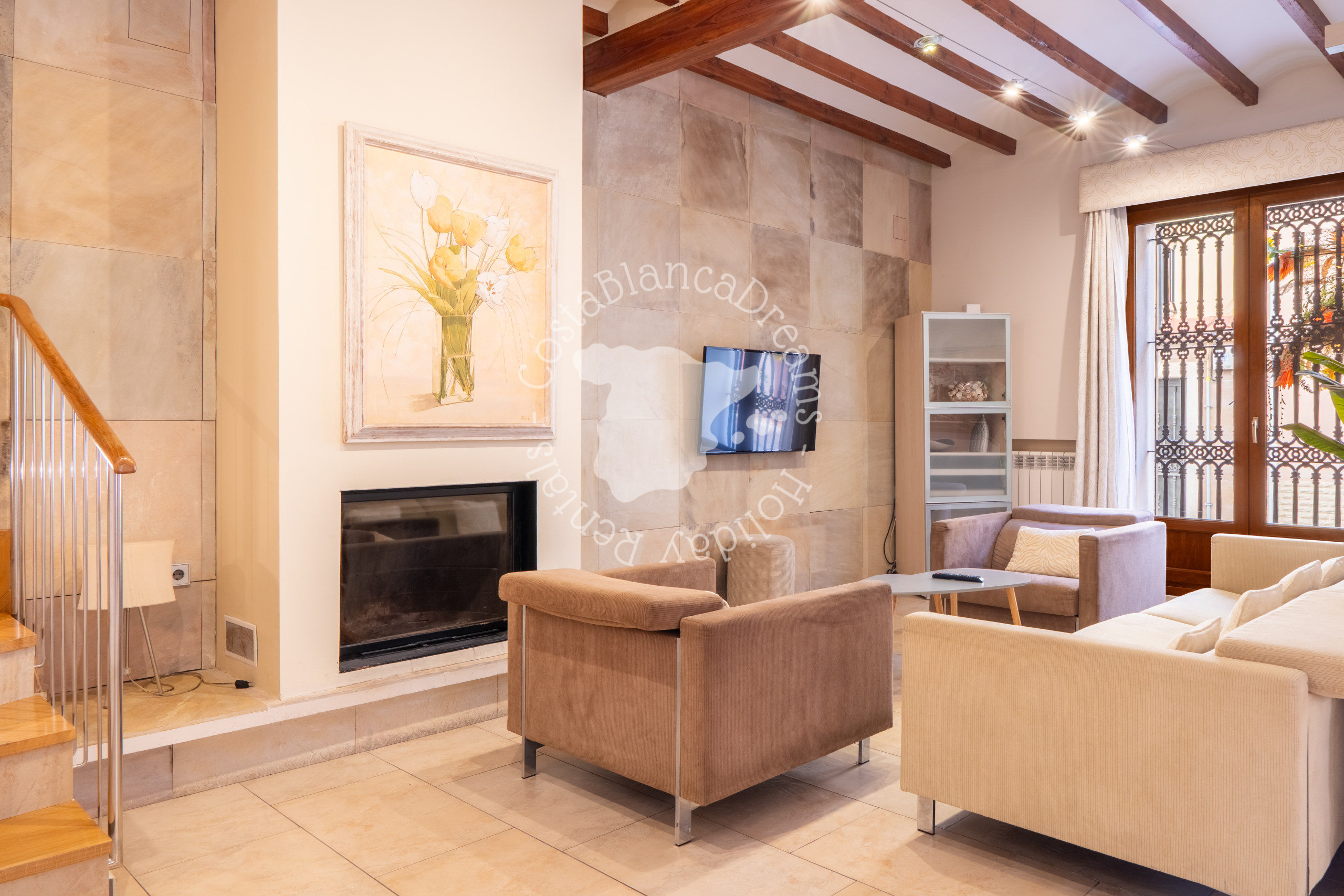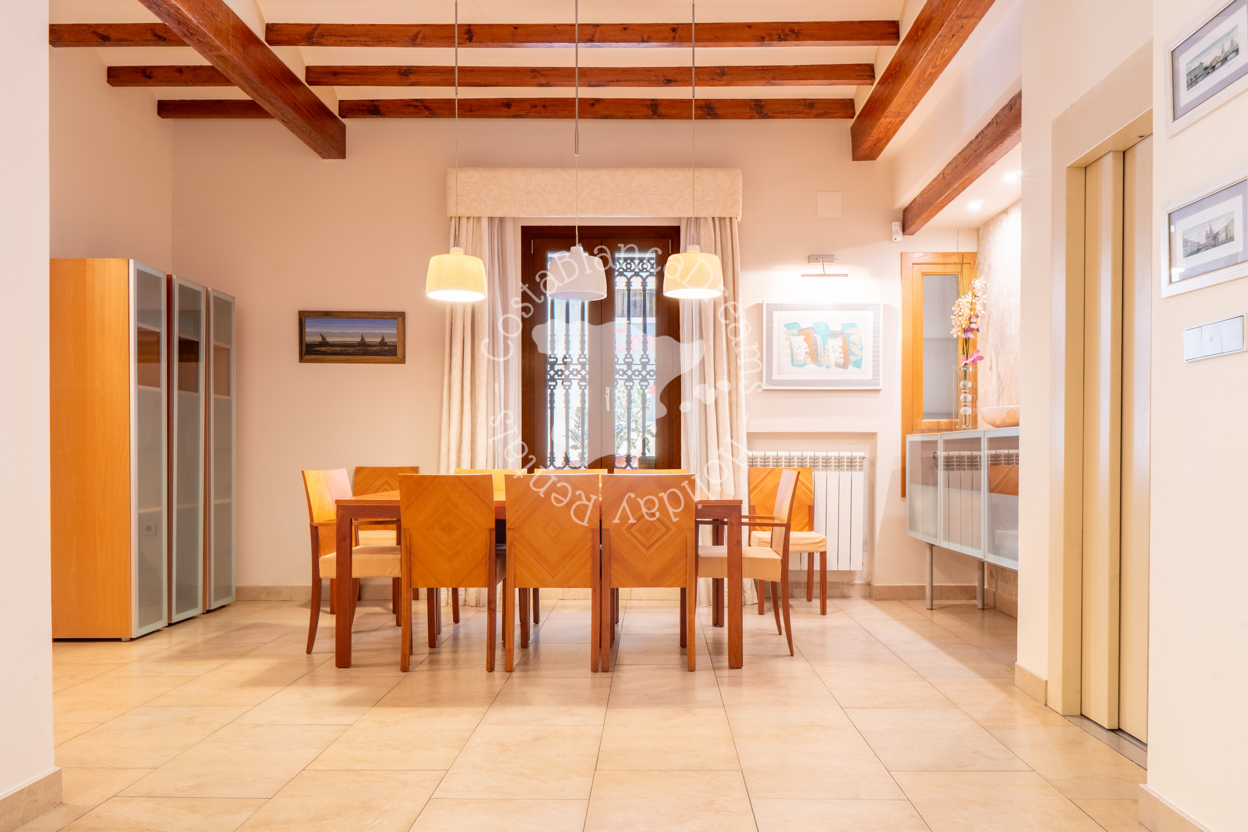Een van de hoogtepunten van Casa Paquita is het privédakterras, perfect om te zonnebaden, buiten te eten of gewoon te ontspannen onder de sterrenhemel. De binnenpatio biedt een oase van rust tijdens warmere dagen, terwijl de volledig uitgeruste keuken, lichte woonkamer en moderne voorzieningen – waaronder airconditioning in elke kamer, snelle wifi en een flatscreen-tv – ervoor zorgen dat u zich meteen thuis voelt. Voor extra gemak beschikt het huis ook over een privélift, die gemakkelijke toegang biedt tot alle verdiepingen.