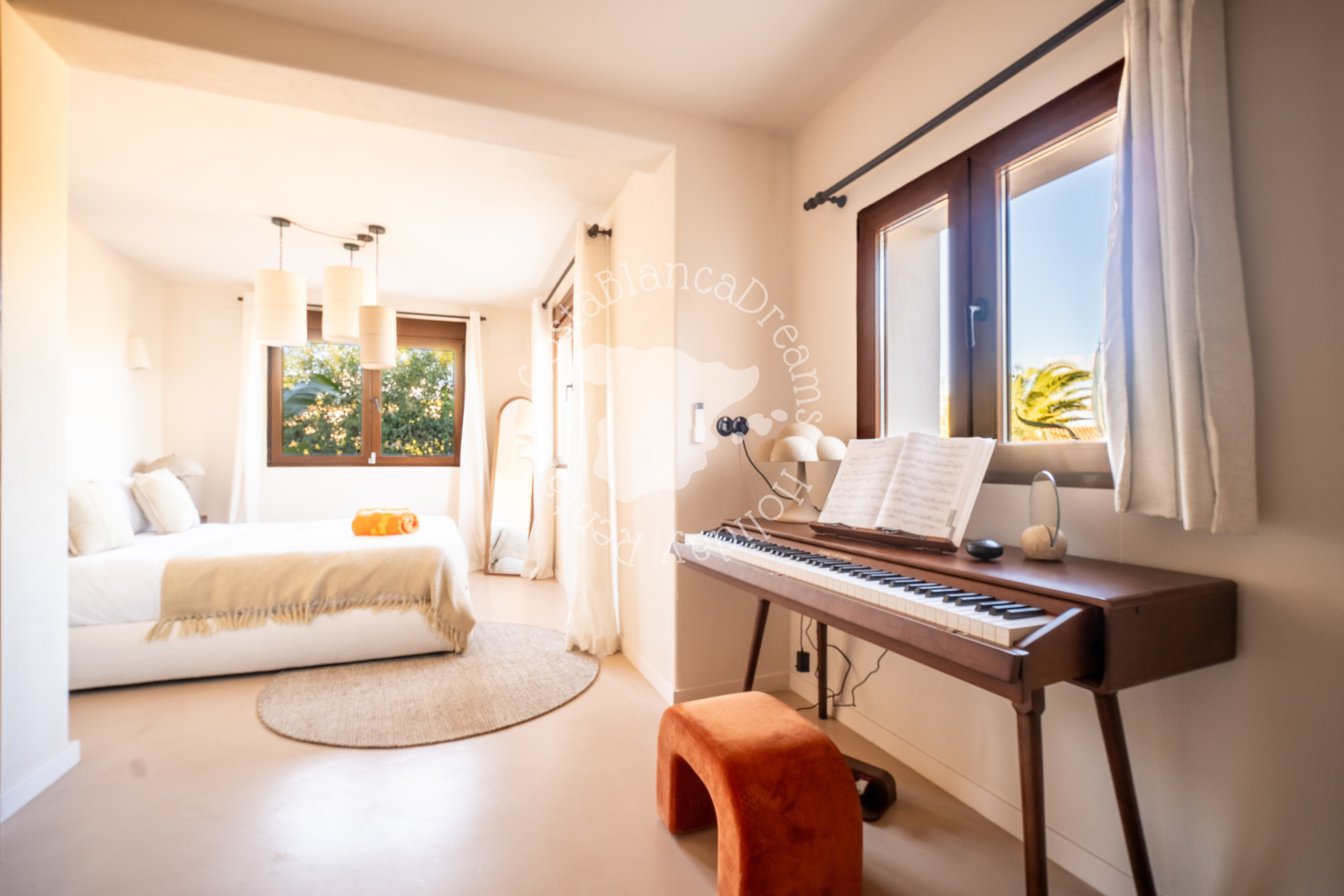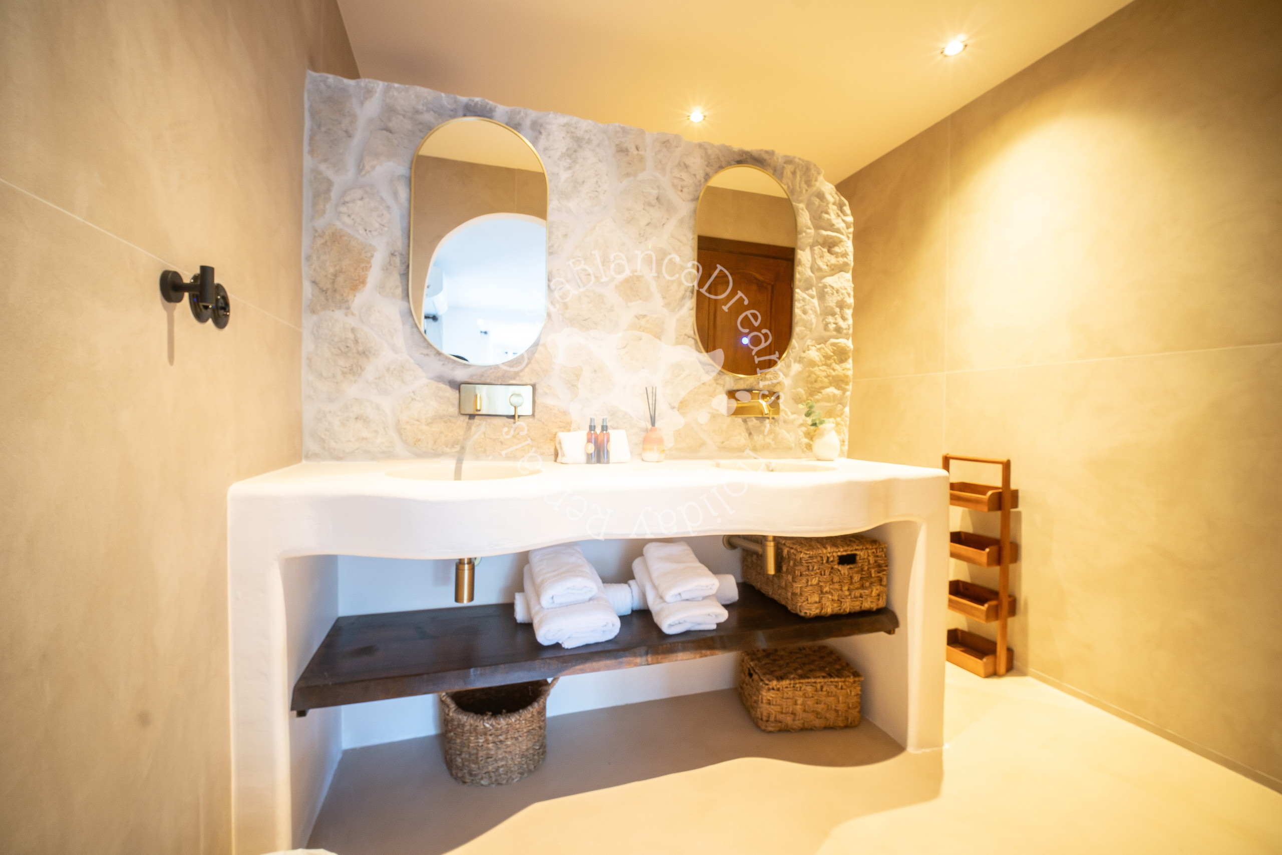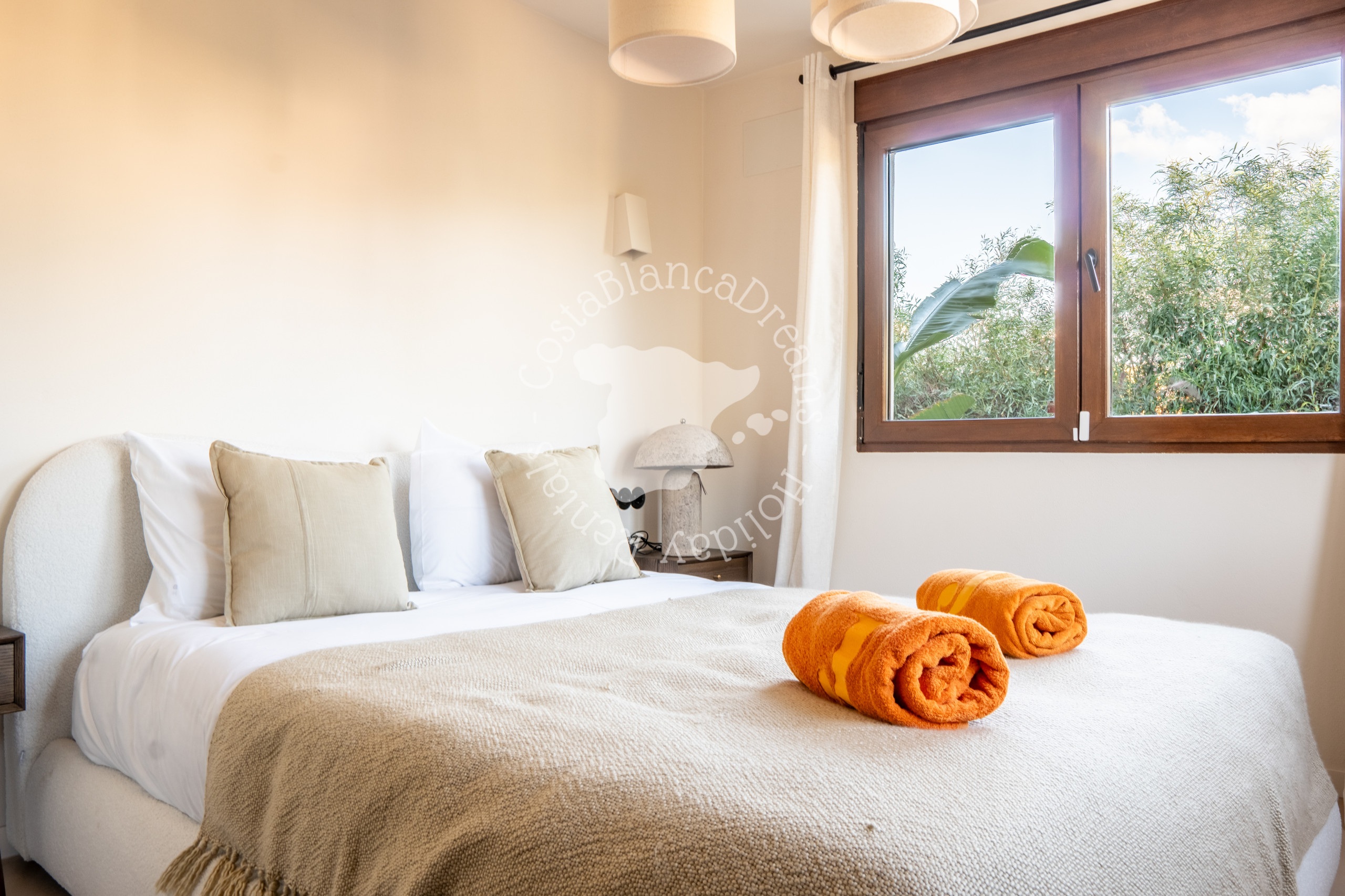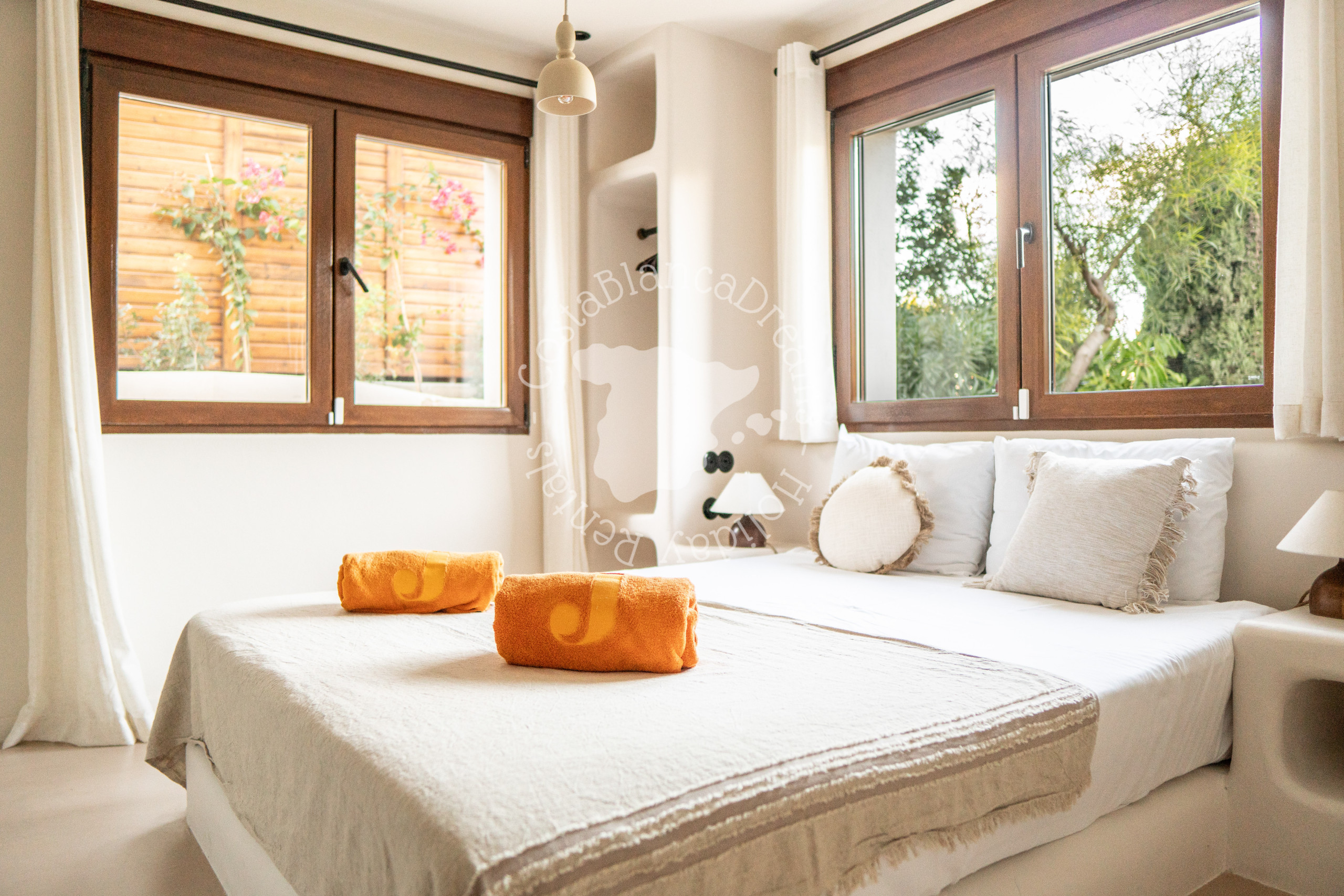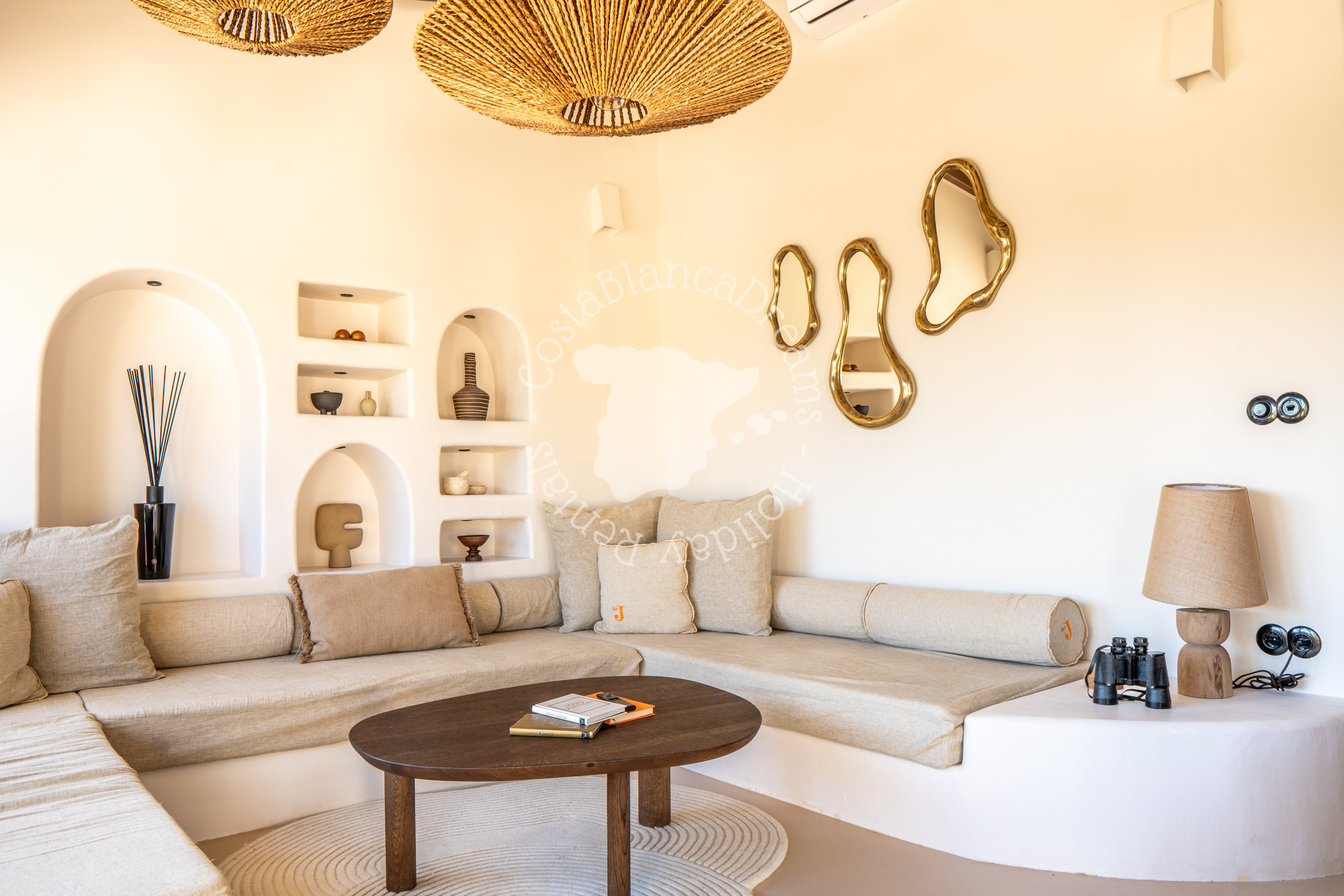 Buiten vindt u een weelderige, mediterraan geïnspireerde tuin met palmbomen, cactussen en inheemse flora. In het hart bevindt zich een zwembad van 9x5 meter (verwarming op aanvraag beschikbaar - zie details hieronder), omgeven door ligstoelen en rustige ontspanningszones. Ontspan op de verzonken ronde bank, perfect voor ontspannen avonden onder de sterrenhemel, of organiseer intieme bijeenkomsten onder de romantische gazebo, die zelfs gebruikt kan worden voor kleine bruiloftsceremonies.