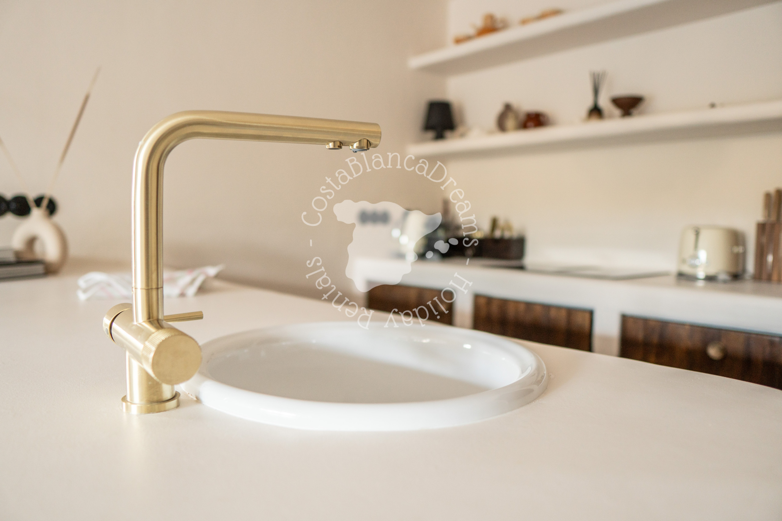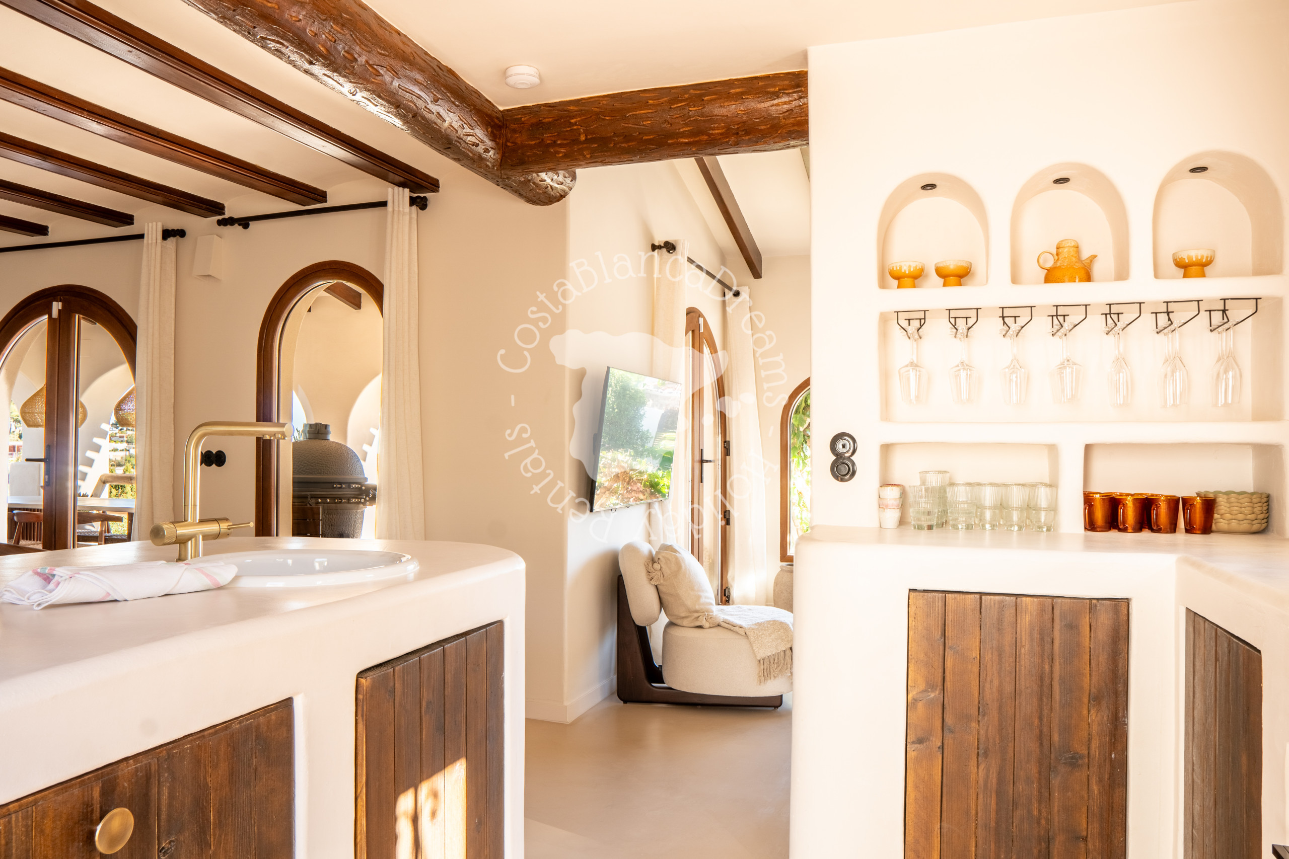 The beautiful kitchen, which overlooks the swimming pool, is fully furnished and equipped with all luxury Bosch equipment.
