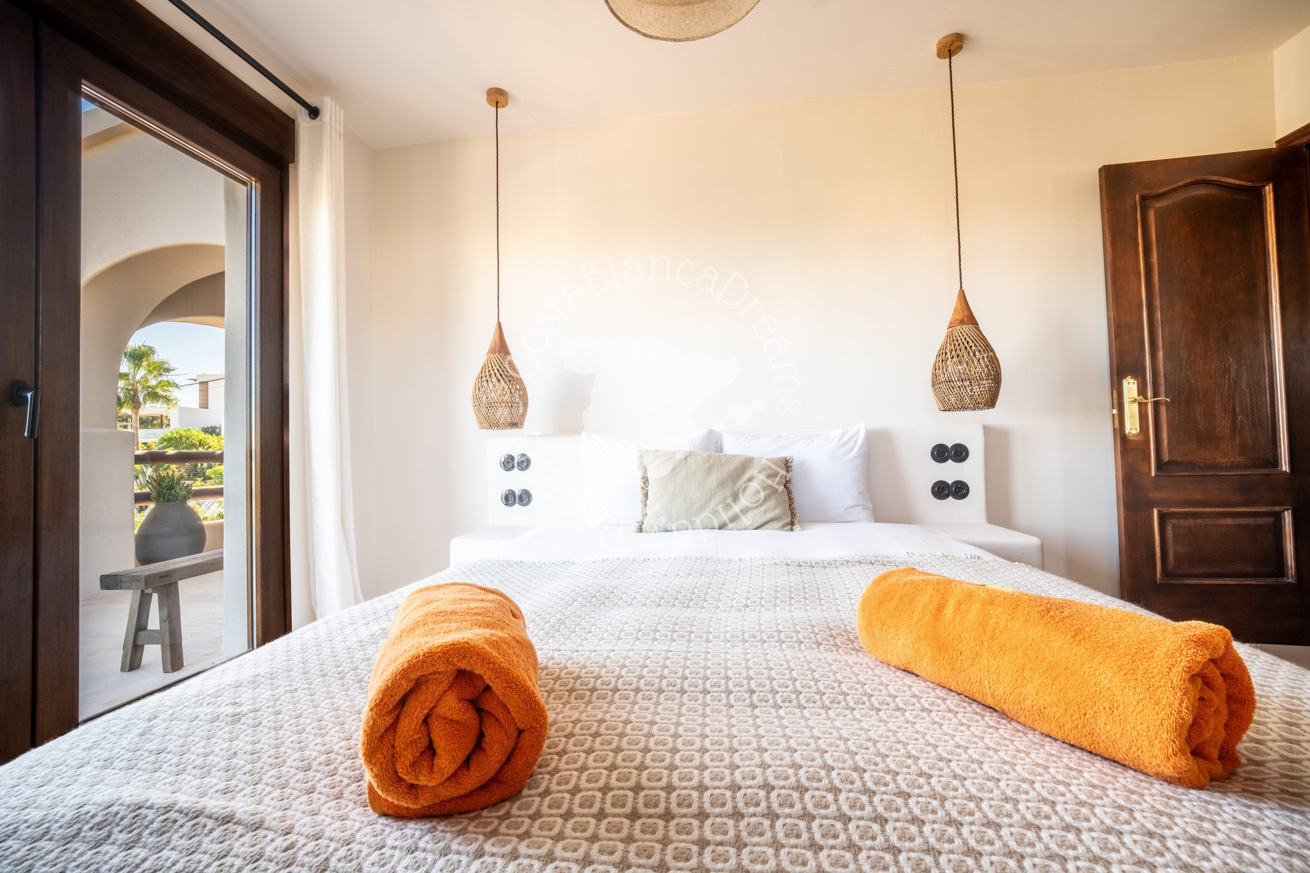 Verderop in de gang bevinden zich drie slaapkamers met airconditioning. Twee slaapkamers hebben een tweepersoonsbed en delen een badkamer met douche, terwijl de derde slaapkamer twee éénpersoonsbedden en een eigen badkamer met douche heeft.