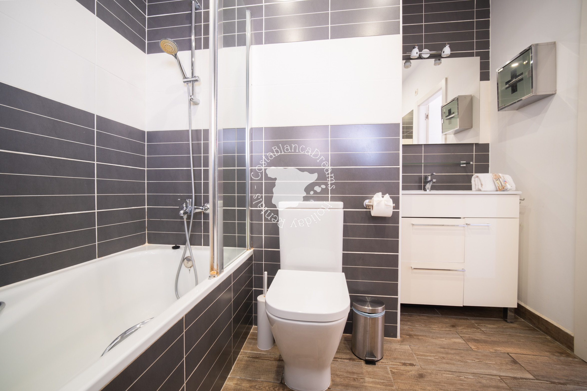 De slaapkamers zijn doordacht ingericht om zowel comfort als praktisch gemak te bieden. Er zijn twee goed ingerichte slaapkamers met tweepersoonsbedden, elk voorzien van airconditioning en voldoende kastruimte, waarvan één beschikt over een en-suite badkamer met douche, wastafel en toilet. De derde slaapkamer is ingericht met een stapelbed en heeft eveneens airconditioning. Er is ook een tweede, aparte badkamer beschikbaar, uitgerust met een douche, wastafel en toilet, wat extra gemak biedt voor alle gasten.