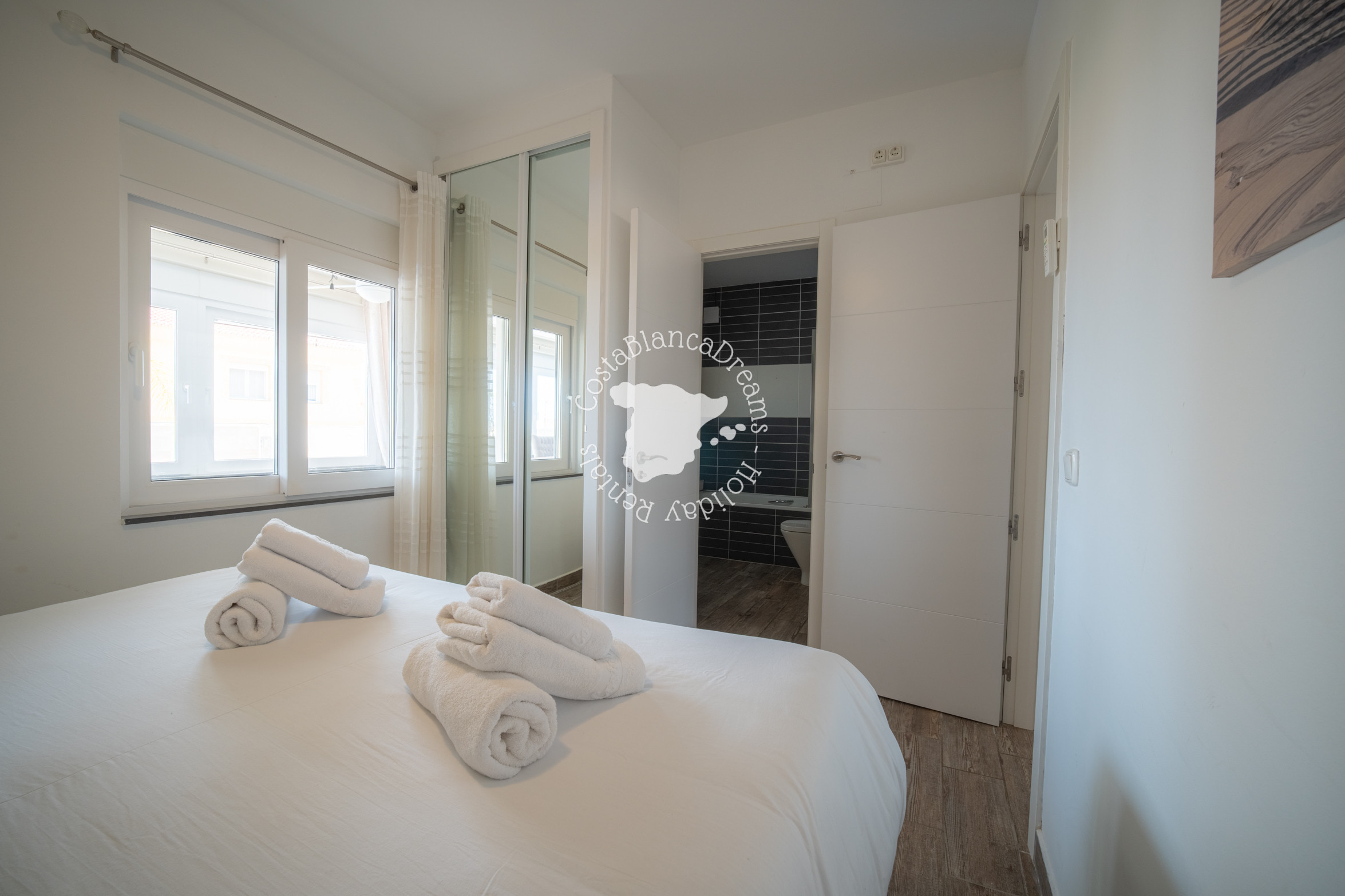 Er zijn twee slaapkamers op de bovenverdieping. Eén heeft een tweepersoonsbed. De andere slaapkamer heeft twee eenpersoonsbedden, ideaal voor gezinnen met kinderen. De badkamer op de gang is voorzien van een douche/badcombinatie, toilet en wastafel. In de gang vind je de deuren die leiden naar het heerlijke balkon met prachtig uitzicht over Calpe en de Middellandse Zee.