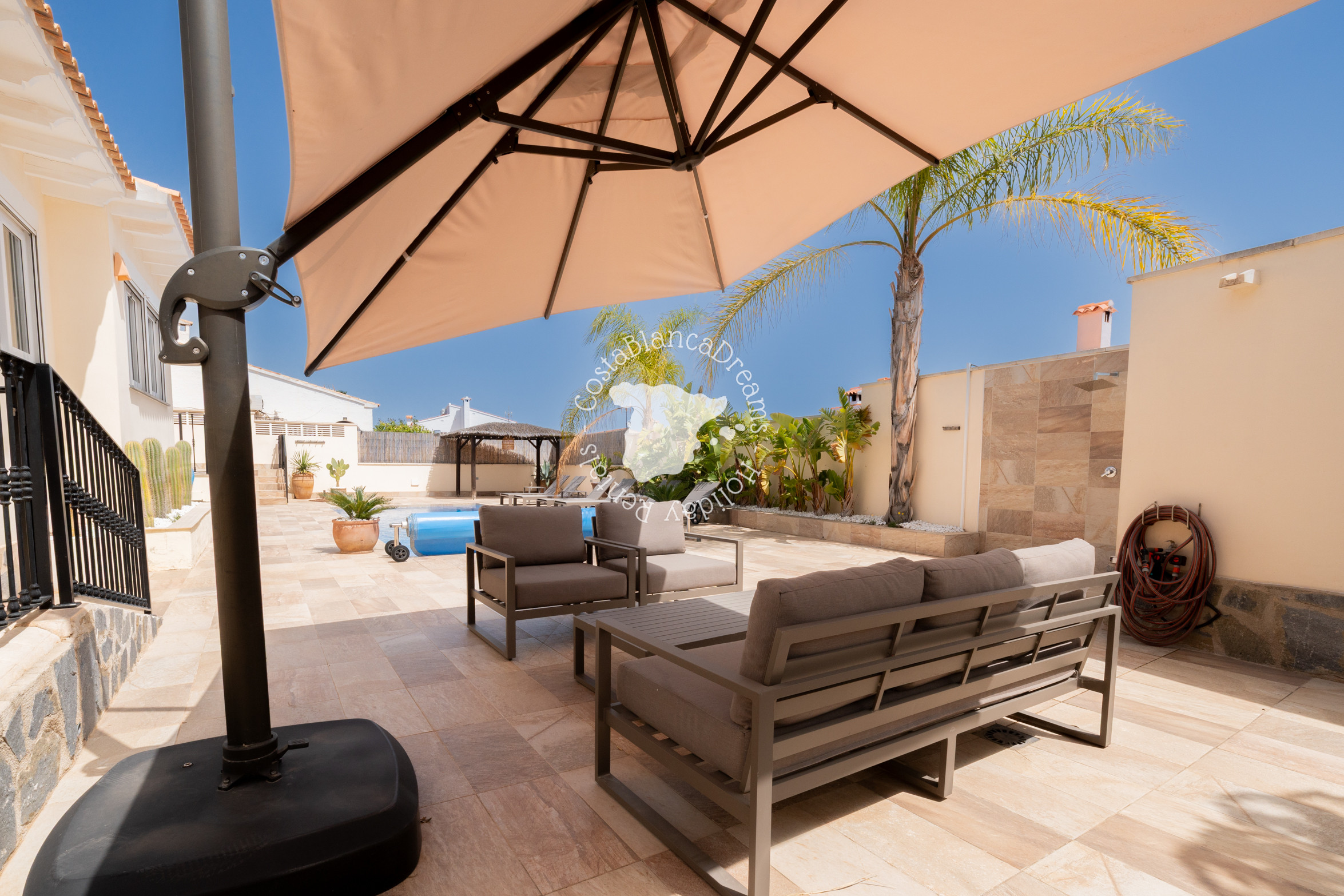 Ontspan bij het privézwembad (8x4m), kom tot rust en ontspan op een van de ligbedden. En voor wat extra luxe kun je gebruik maken van de buitenkeuken, barbecue op houtskool en er is een extra toilet zodat je niet de hele tijd door het huis hoeft. Je kunt de was opfrissen met de privéwasmachine. De tuin is volledig omheind en via een automatische poort heeft u toegang tot uw privéparkeerplaats.