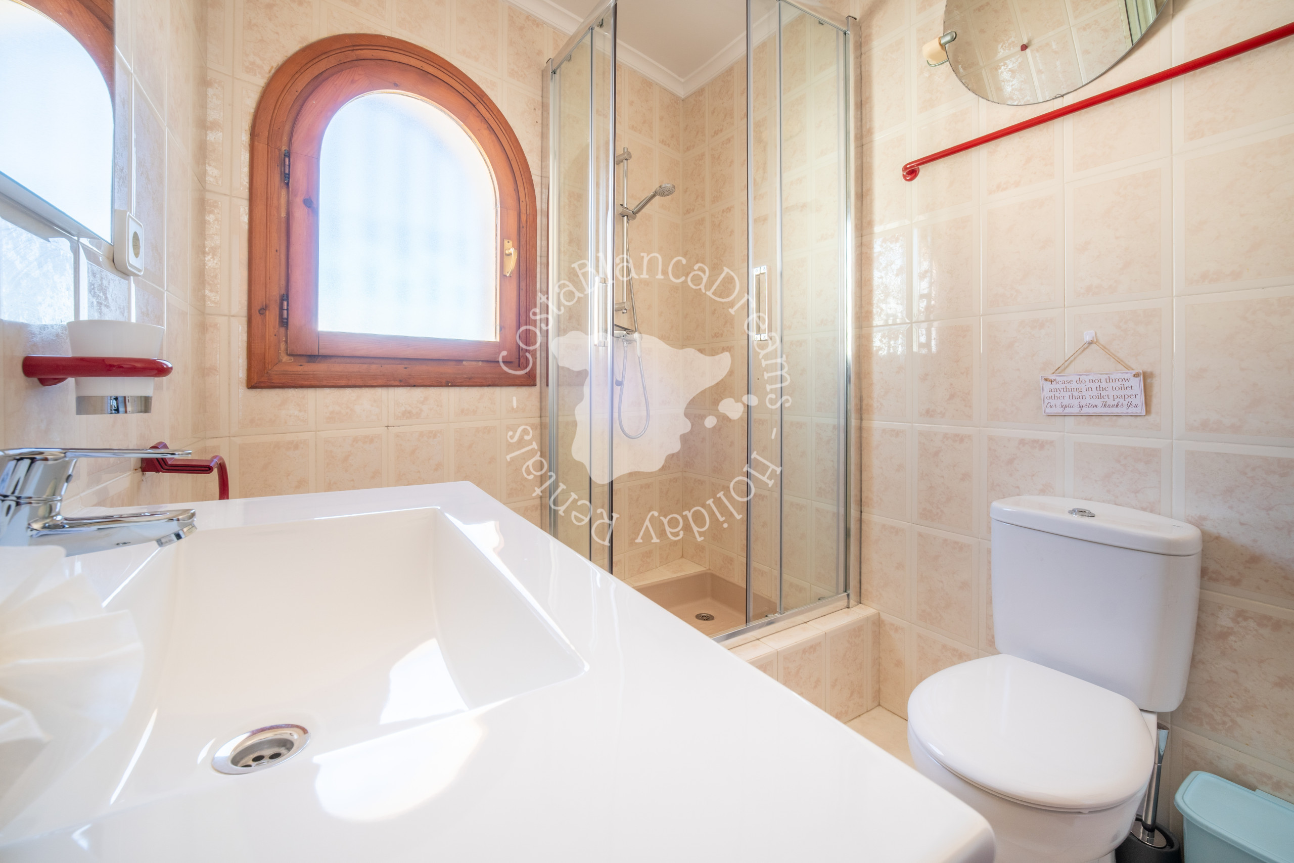 De eerste badkamer beschikt over een handige bad/douchecombinatie, toilet en wastafel, terwijl de tweede over een verfrissende douche, toilet en wastafel beschikt, zodat aan al uw wensen kan worden voldaan.