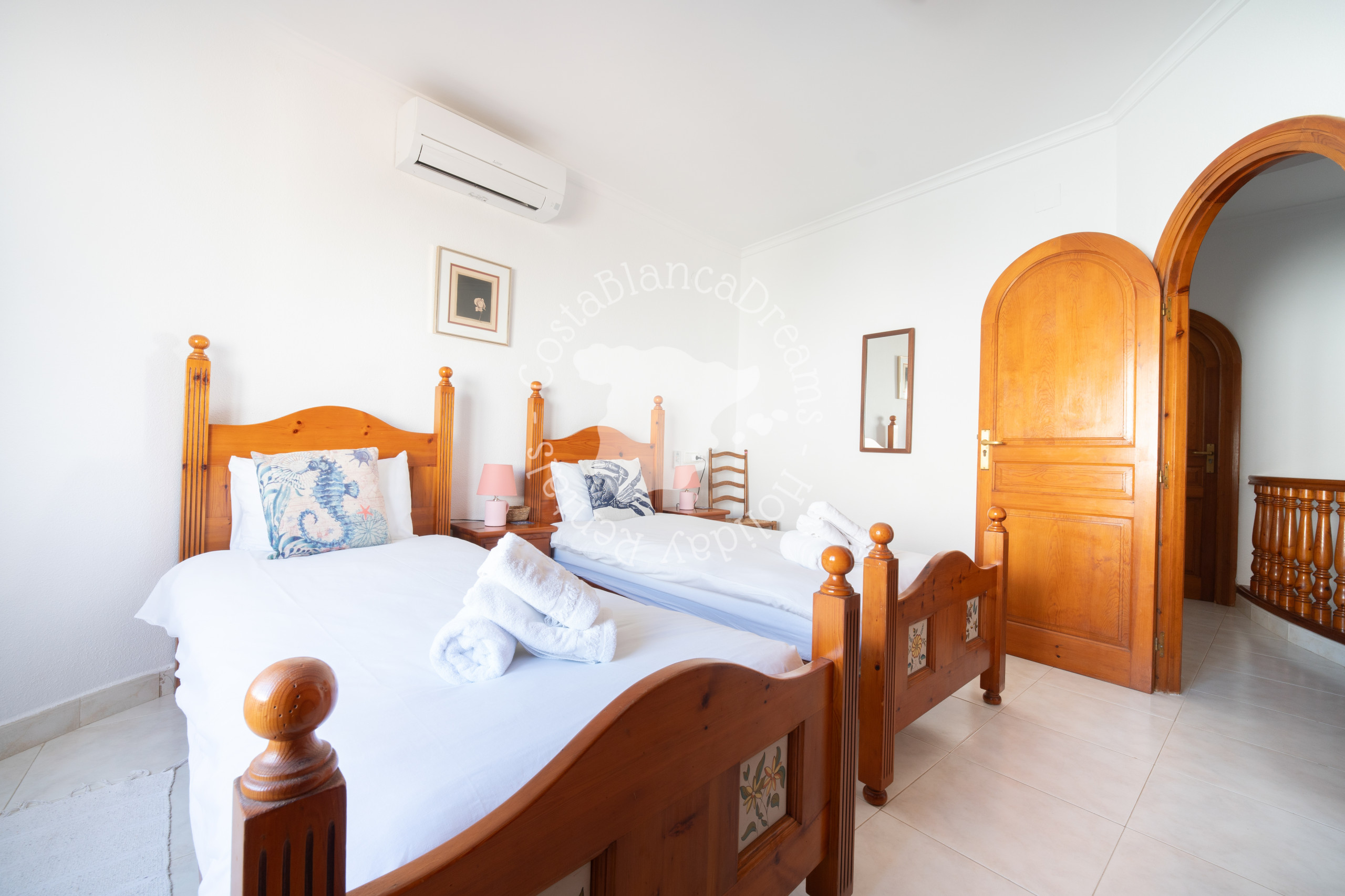 Er zijn in totaal 4 slaapkamers. Twee slaapkamers zijn voorzien van tweepersoonsbedden en airconditioning, zodat u tijdens uw verblijf verzekerd bent van comfort. Daarnaast vind je een slaapkamer met twee eenpersoonsbedden en nog een kamer met een stapelbed.