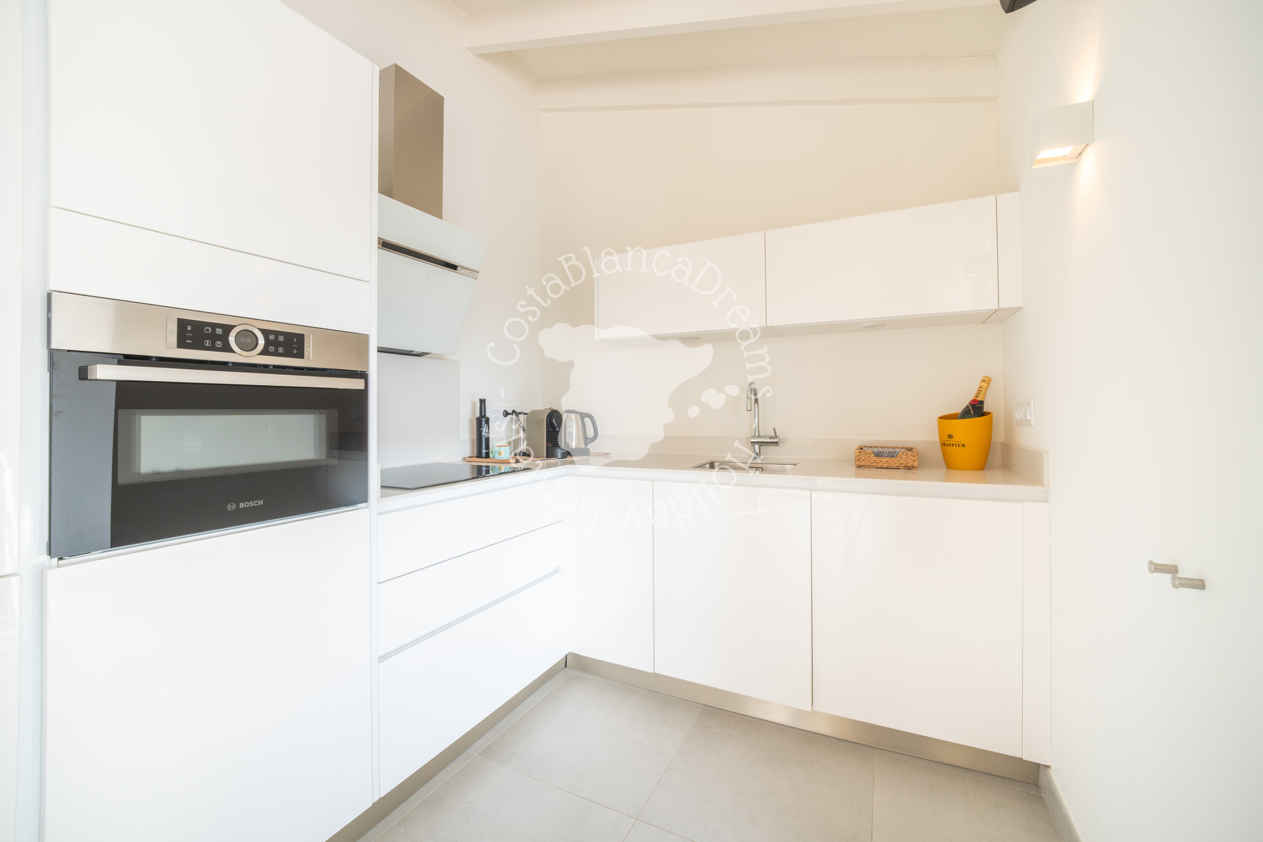 Op zwembadniveau vindt u een zelfstandig appartement met een woonkamer, Duitse satelliet-tv en Spaanse zenders en een plafondventilator, evenals een kitchenette met koelkast met klein ingebouwd vriesvak, filterkoffiezetapparaat, en keramische kookplaat met 2 branders. De slaapkamer is voorzien van airconditioning en een tweepersoonsbed (200×180) en er is een badkamer met toilet, wastafel en douche.