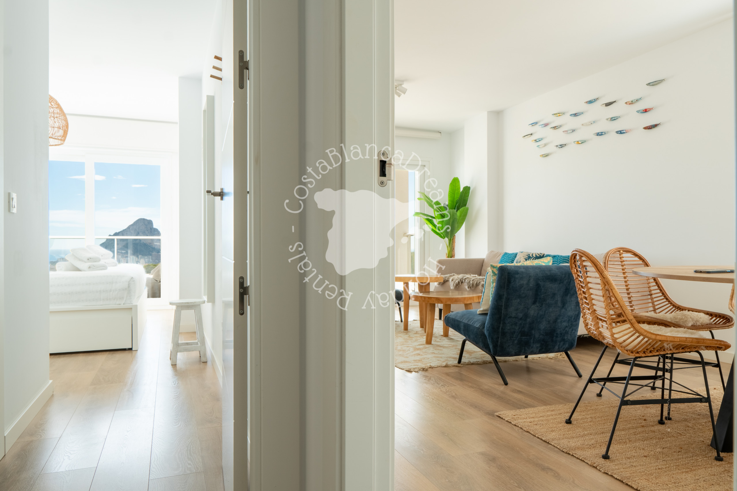 Lo más destacado de esta casa de vacaciones es el balcón, que ofrece impresionantes vistas al mar y al Peñón de Ifach. Es el lugar perfecto para relajarse tomando una copa y ver pasar el mundo.