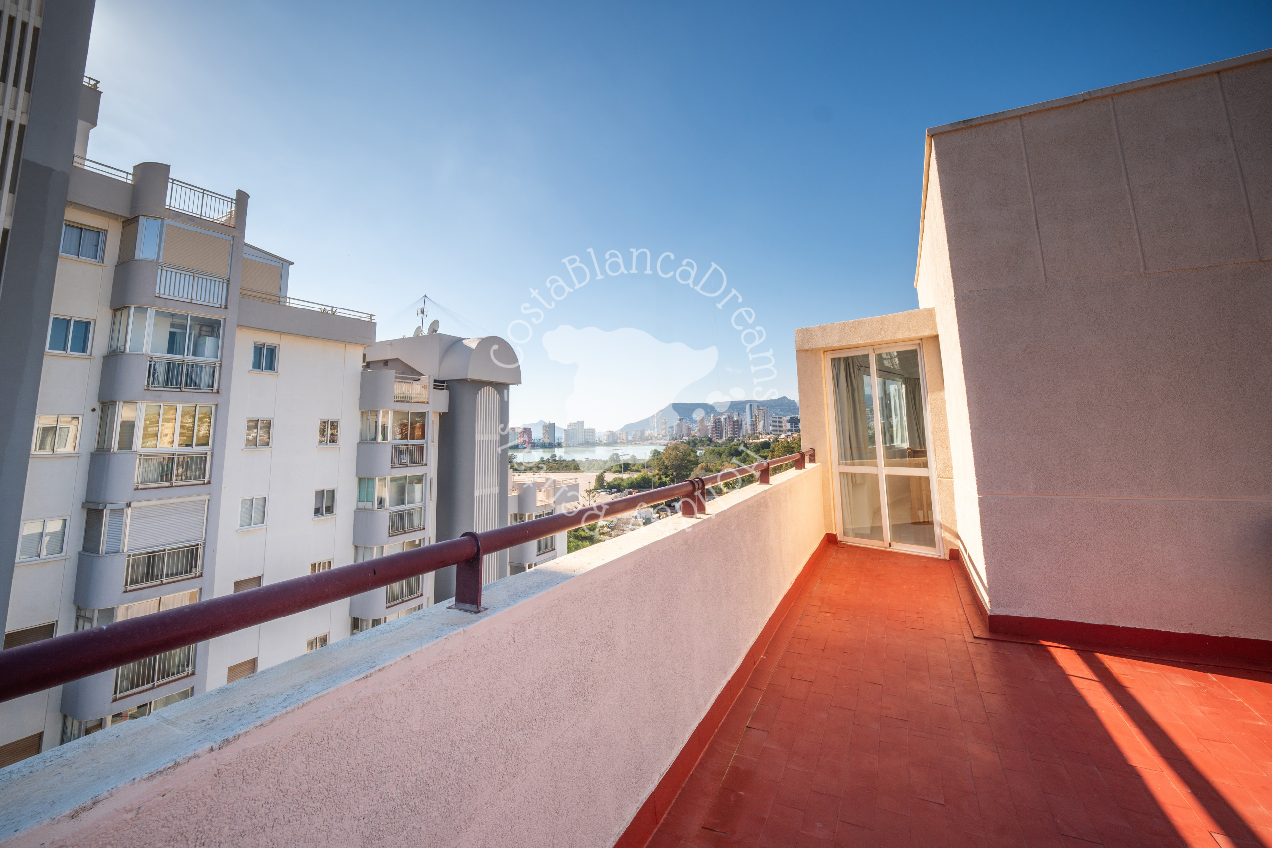 Desde el salón se accede directamente al balcón privado, donde se pueden disfrutar de las bonitas vistas al Peñón de Ifach, el famoso símbolo natural de Calpe.