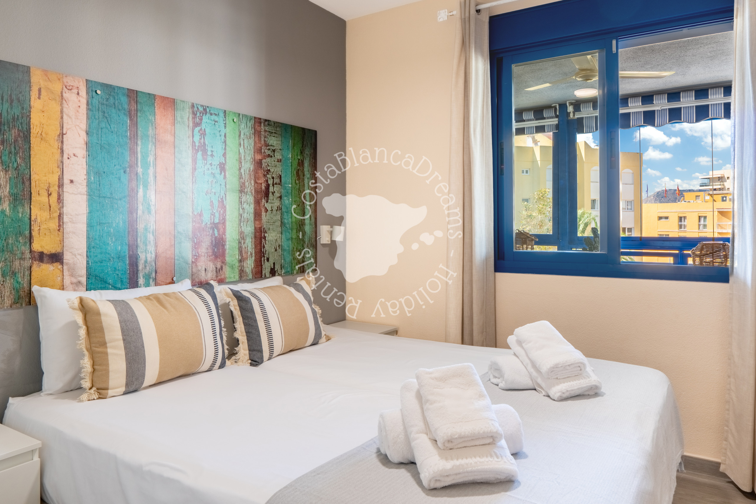 Turquesa Beach es un luminoso y acogedor apartamento de 3 dormitorios en la 4.ª planta, a solo 200 metros del puerto, las playas y los restaurantes de Calpe. Con vistas parciales al mar, al puerto de Calpe y al emblemático Peñón de Ifach, este apartamento con orientación sur disfruta de abundante sol durante todo el año, lo que lo convierte en una escapada perfecta incluso en invierno. El complejo cuenta con una amplia piscina comunitaria con fuentes y una piscina infantil independiente, ofreciendo un ambiente relajante para todas las edades.
