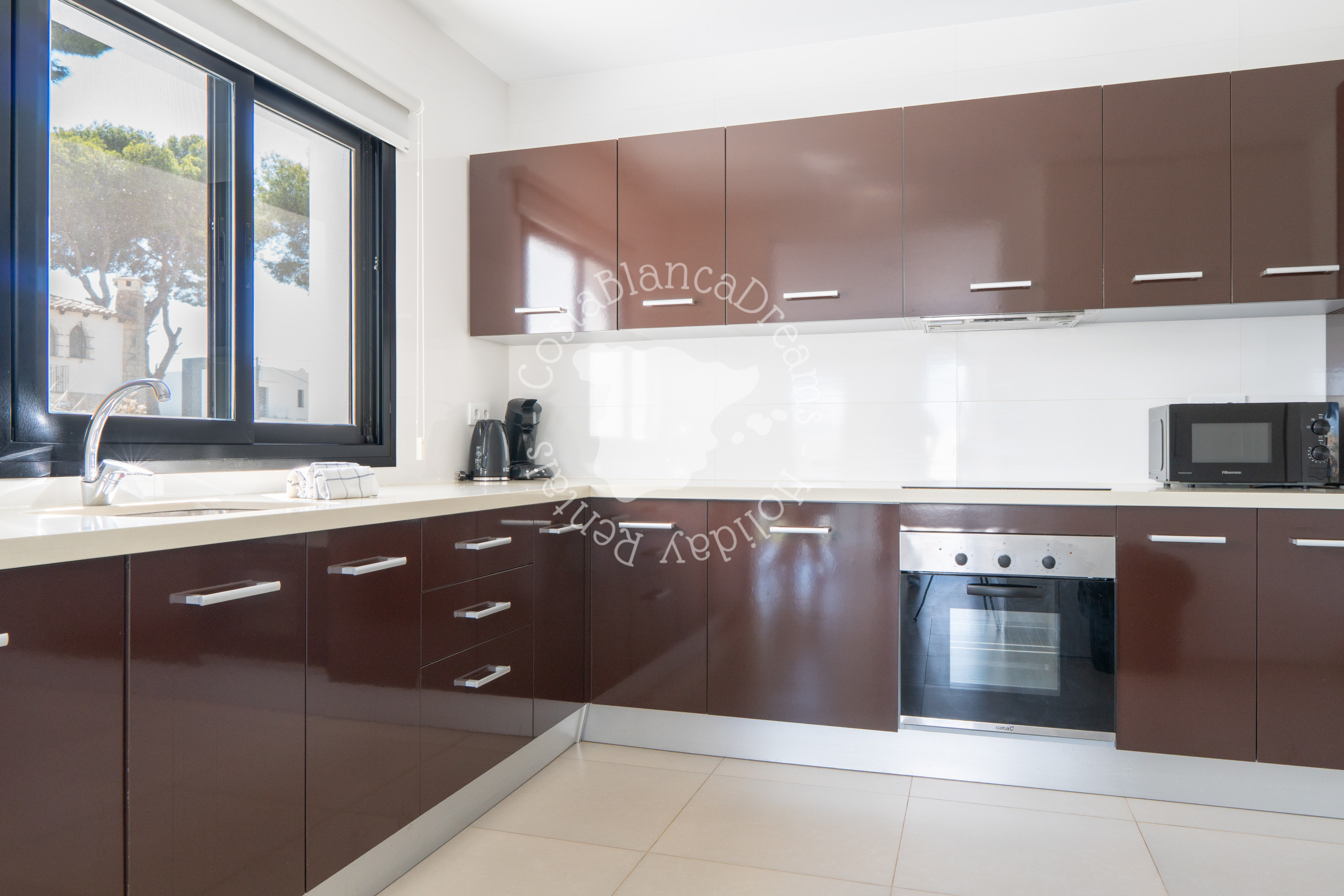 La cocina está equipada con nevera con congelador, vitrocerámica, Nespresso, hervidor de agua, tostadora, microondas, horno, lavavajillas, etc.