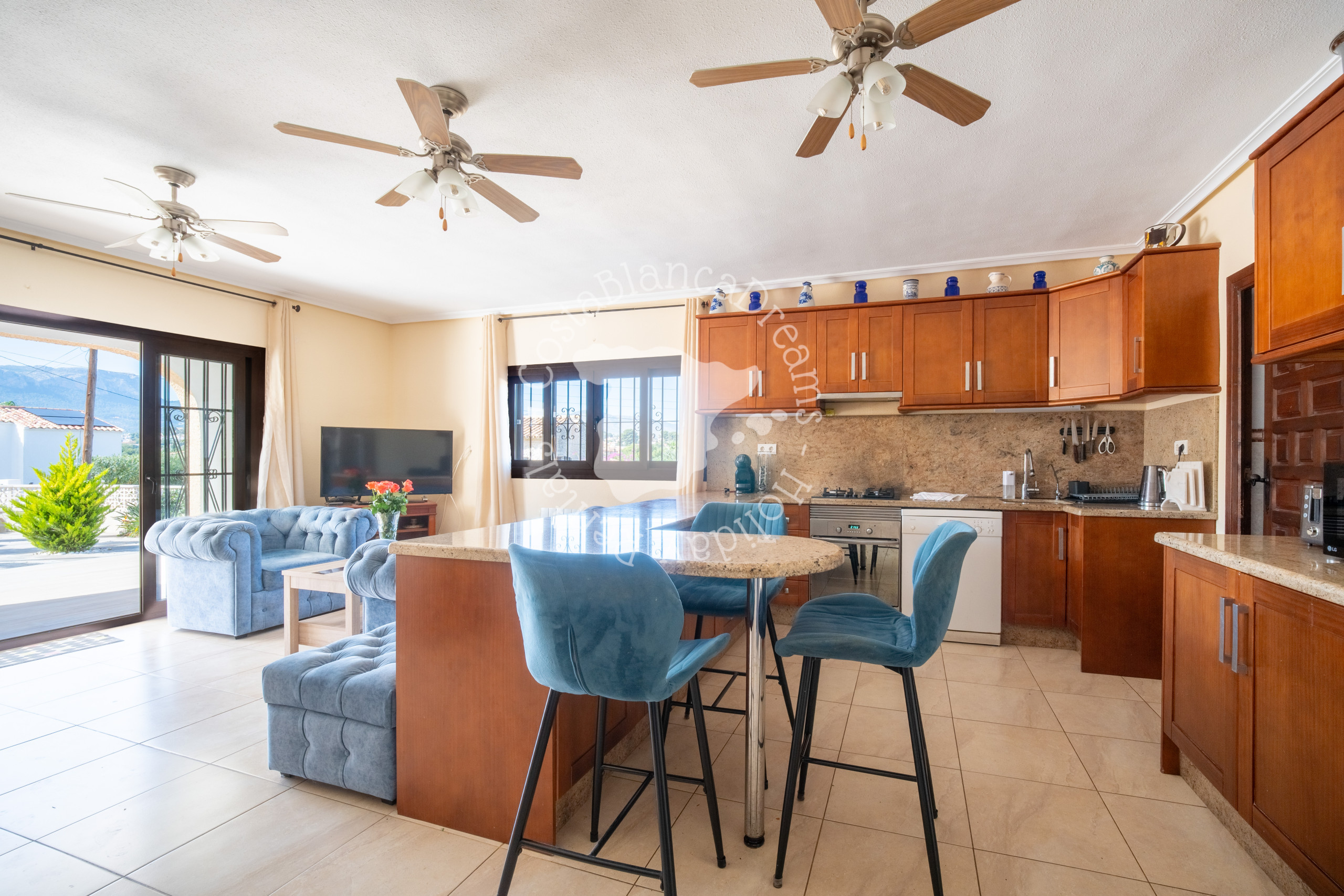 Una encantadora villa de vacaciones en Calpe, Costa Blanca para 10 personas, con 5 dormitorios y 3 baños.