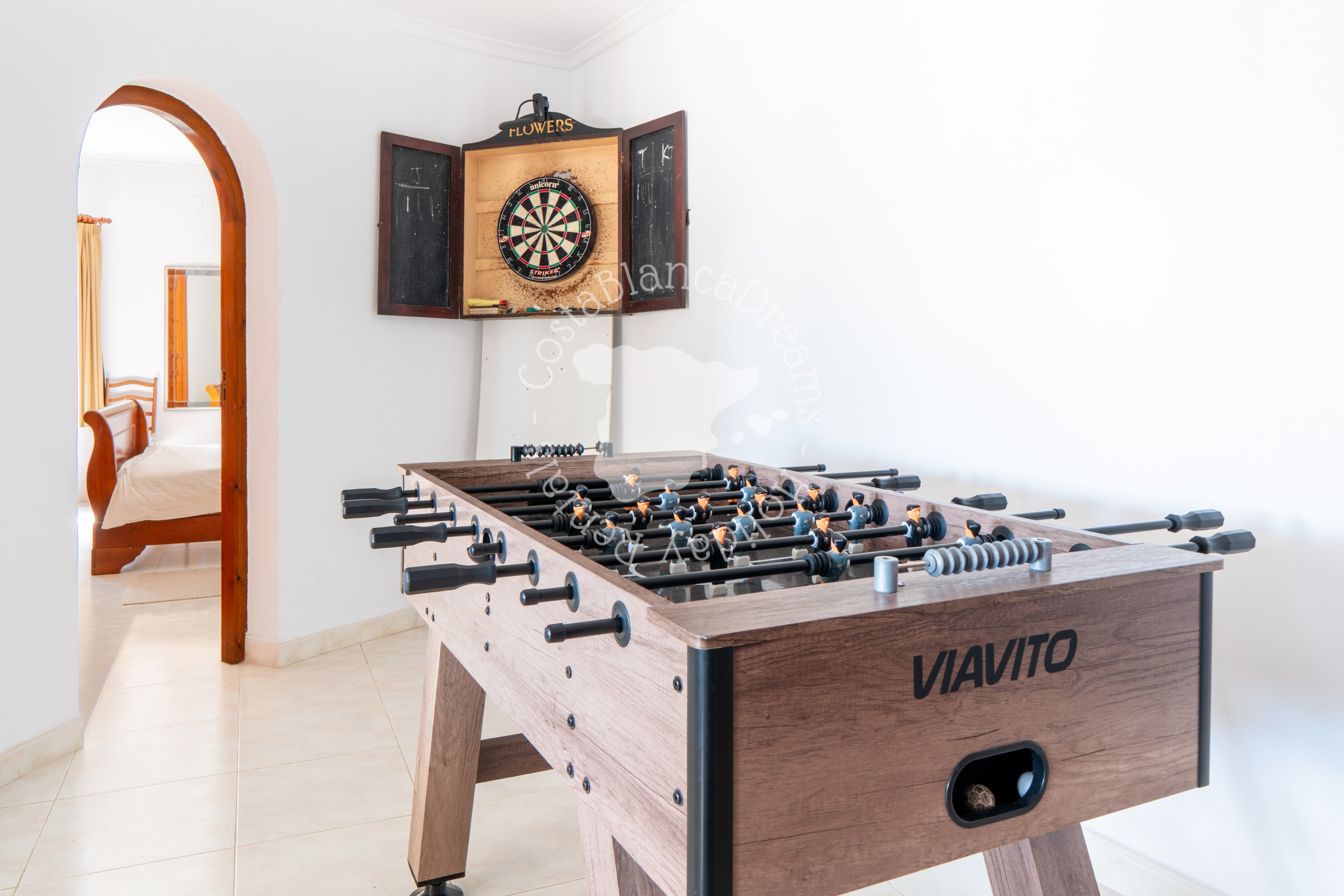 Para mayor entretenimiento, la villa ofrece una mesa de ping-pong y una sala de juegos equipada con diana, futbolín y billar. Hay aparcamiento privado disponible en la propiedad.