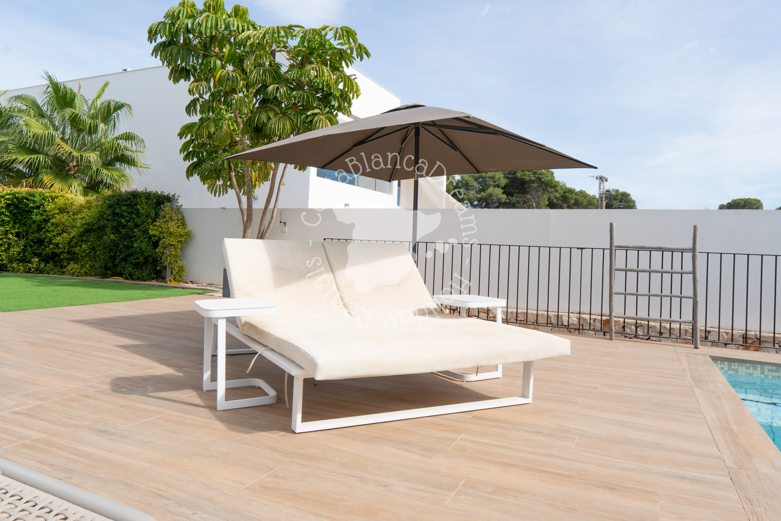 Salga a la impresionante terraza, donde podrá tomar el sol en las tumbonas, darse un refrescante chapuzón en la piscina privada (9×4) o disfrutar de la cocina al aire libre en la cocina cubierta y la zona de barbacoa con estufa de gas de cuatro fogones. .