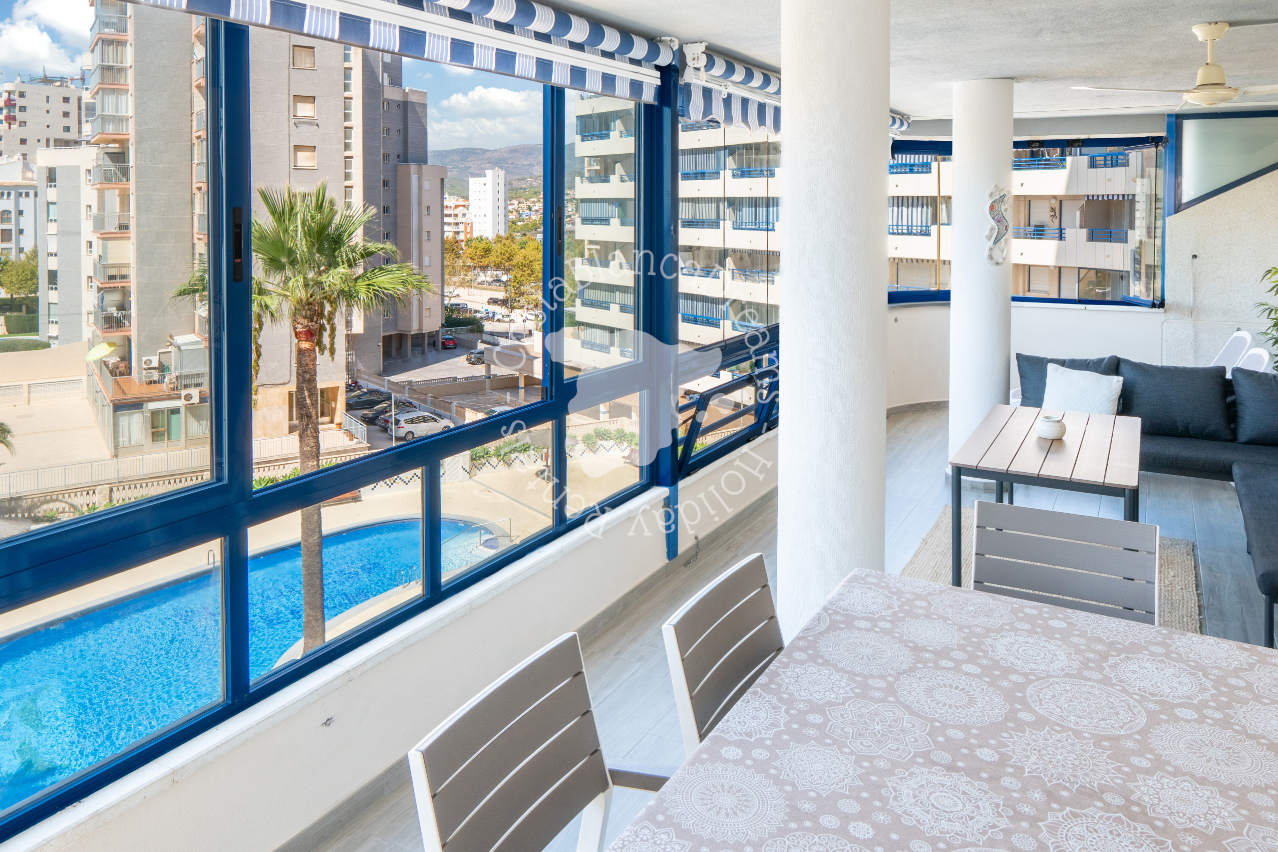 Turquesa Beach est un appartement lumineux et accueillant de 3 chambres situé au 4e étage, à seulement 200 mètres du port, des plages et des restaurants de Calpe. Offrant une vue partielle sur la mer, le port de Calpe et l'emblématique Peñón de Ifach, cet appartement exposé plein sud bénéficie d'un ensoleillement optimal toute l'année, ce qui en fait un lieu de séjour idéal, même en hiver. La résidence dispose d'une grande piscine commune avec fontaines et d'un bassin séparé pour enfants, offrant un cadre relaxant pour tous les âges.
