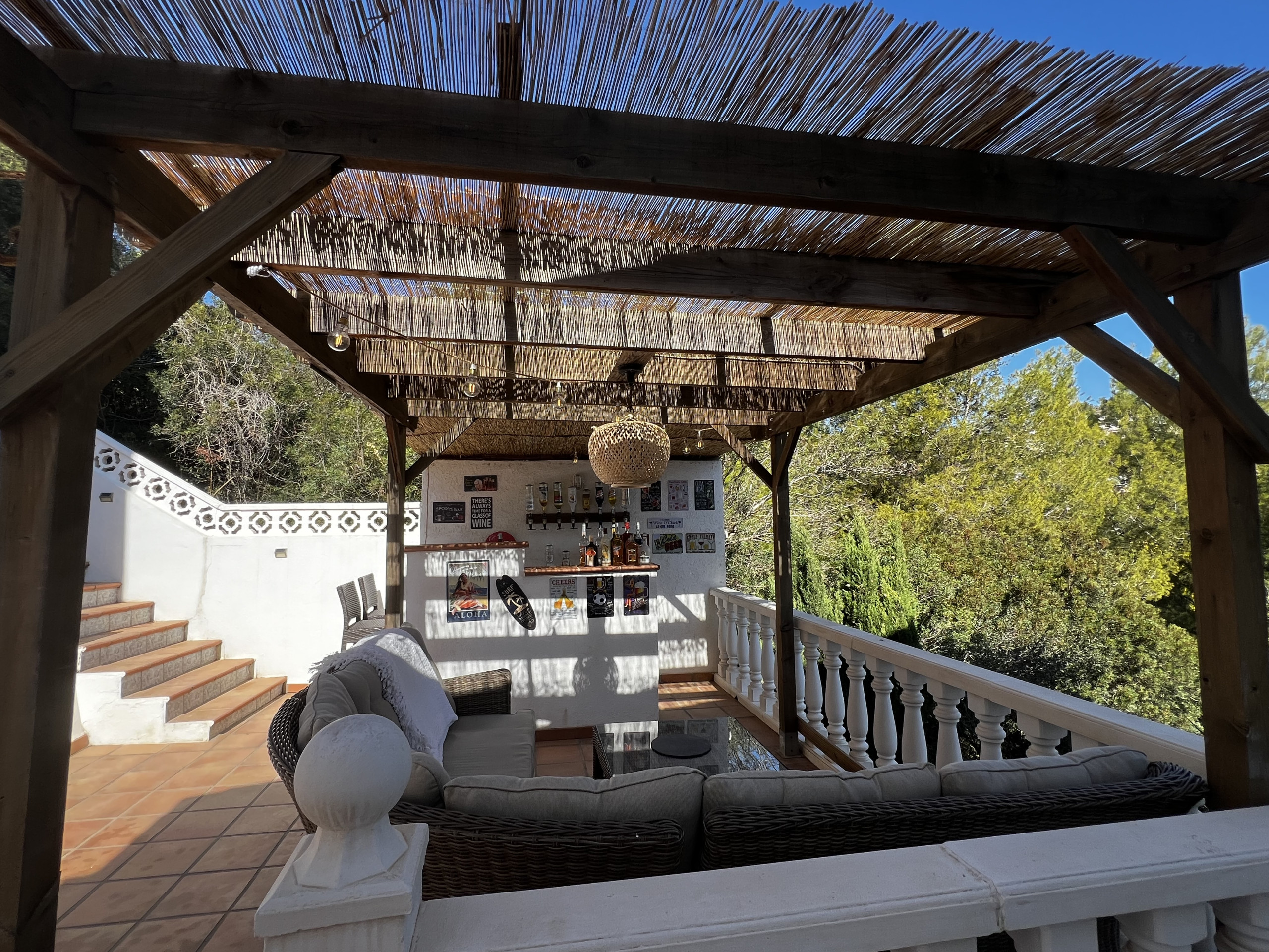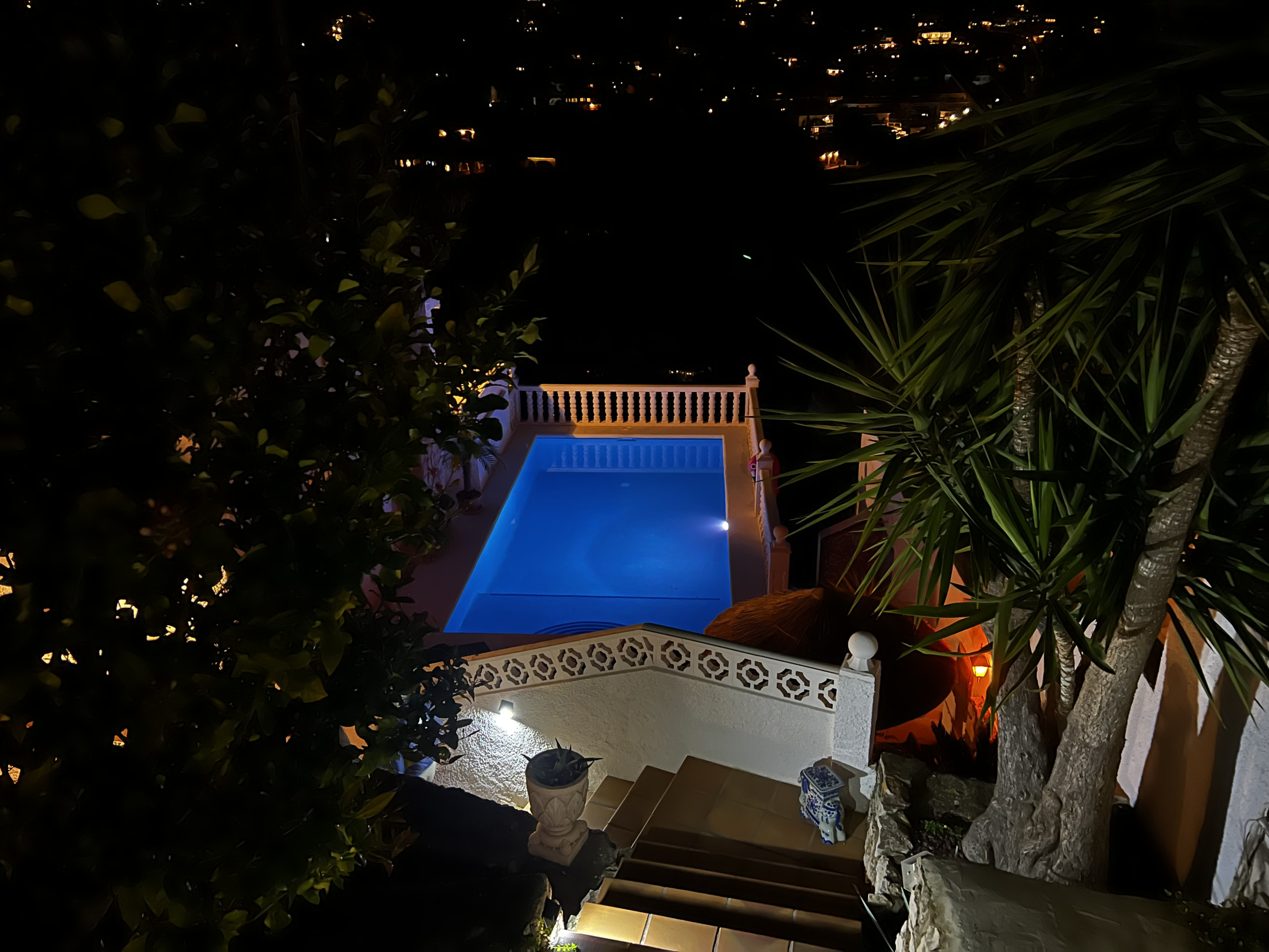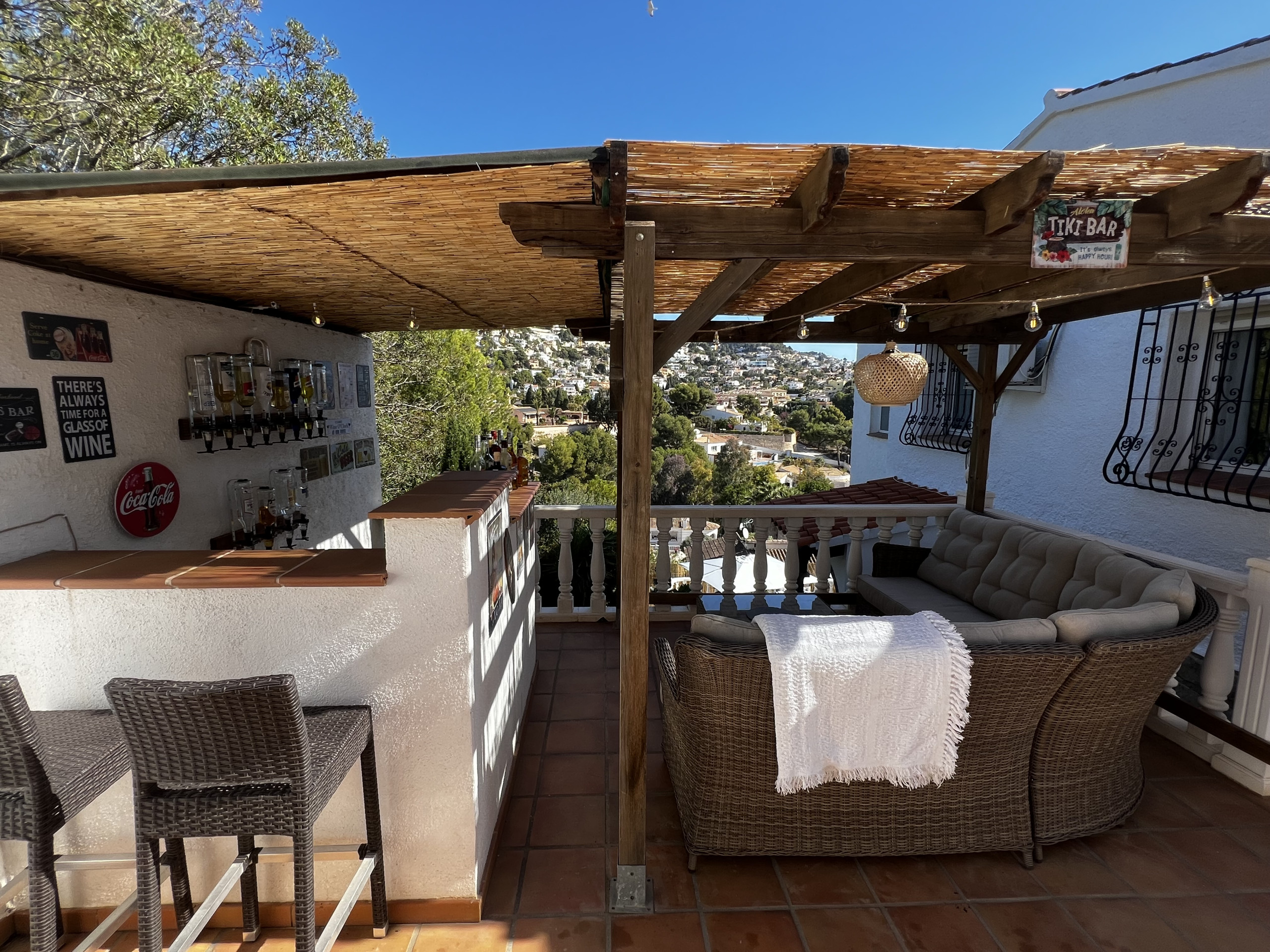 À votre arrivée, vous gravirez plusieurs marches pour atteindre le niveau de la piscine, où votre oasis privée vous attend. La piscine de 8x3 mètres vous invite à prendre un rafraîchissement tout en profitant des vues magnifiques sur le paysage environnant. Détendez-vous dans l'espace salon couvert ou profitez du soleil sur les confortables bains de soleil, le tout sur fond de superbe paysage de la Costa Blanca.