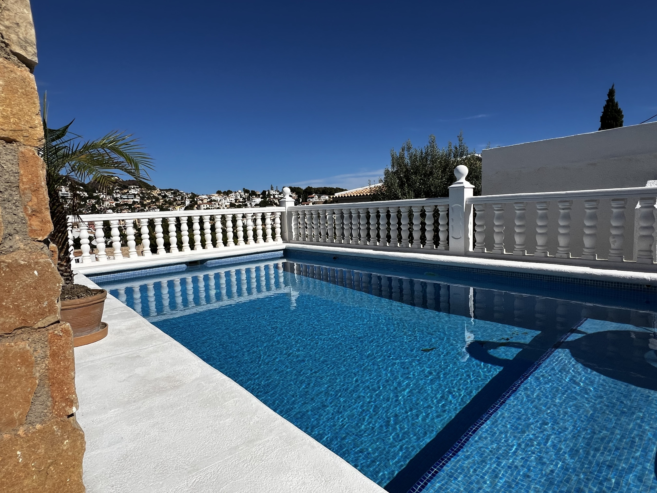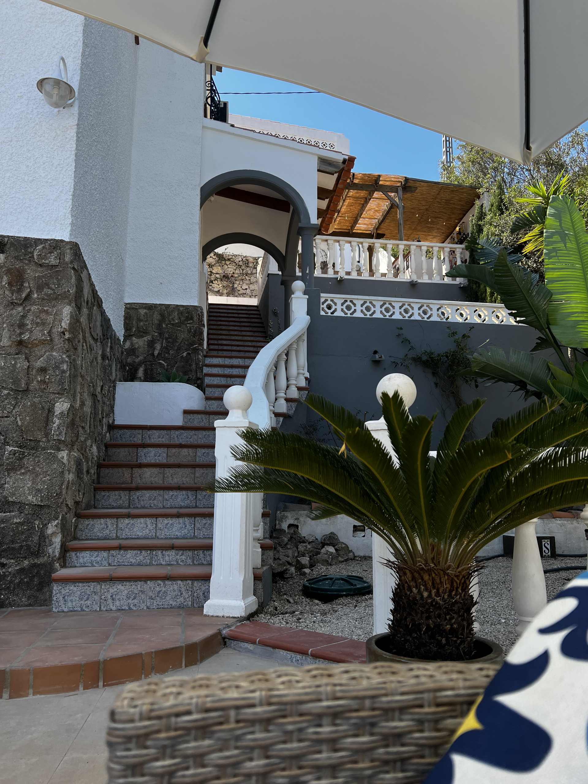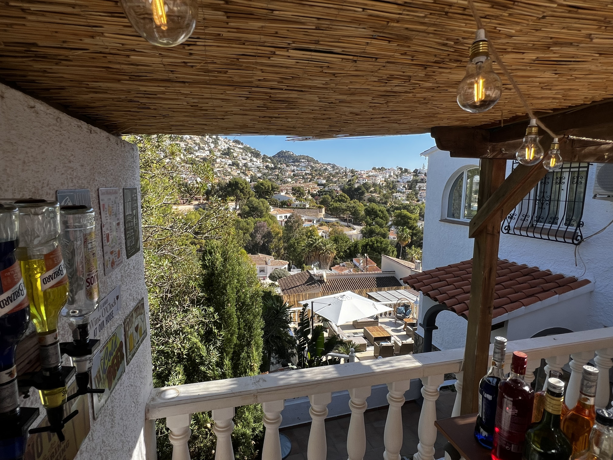 À votre arrivée, vous gravirez plusieurs marches pour atteindre le niveau de la piscine, où votre oasis privée vous attend. La piscine de 8x3 mètres vous invite à prendre un rafraîchissement tout en profitant des vues magnifiques sur le paysage environnant. Détendez-vous dans l'espace salon couvert ou profitez du soleil sur les confortables bains de soleil, le tout sur fond de superbe paysage de la Costa Blanca.