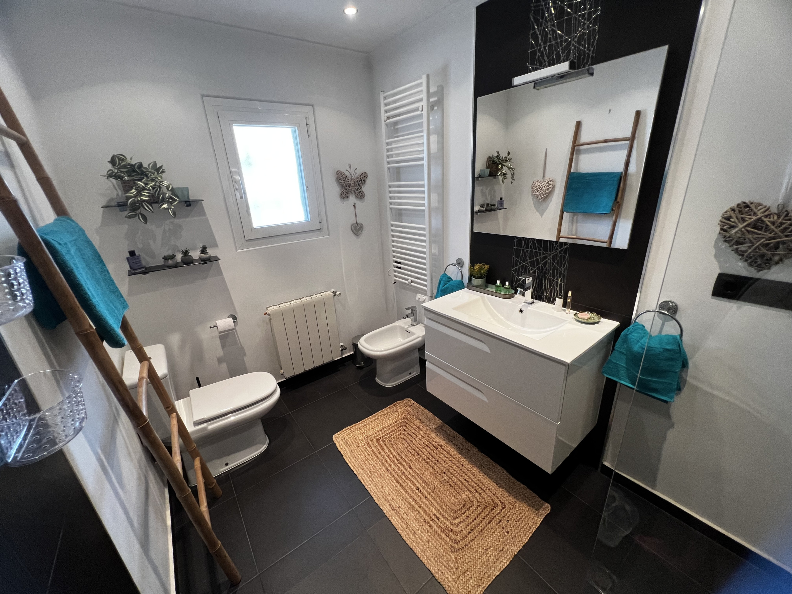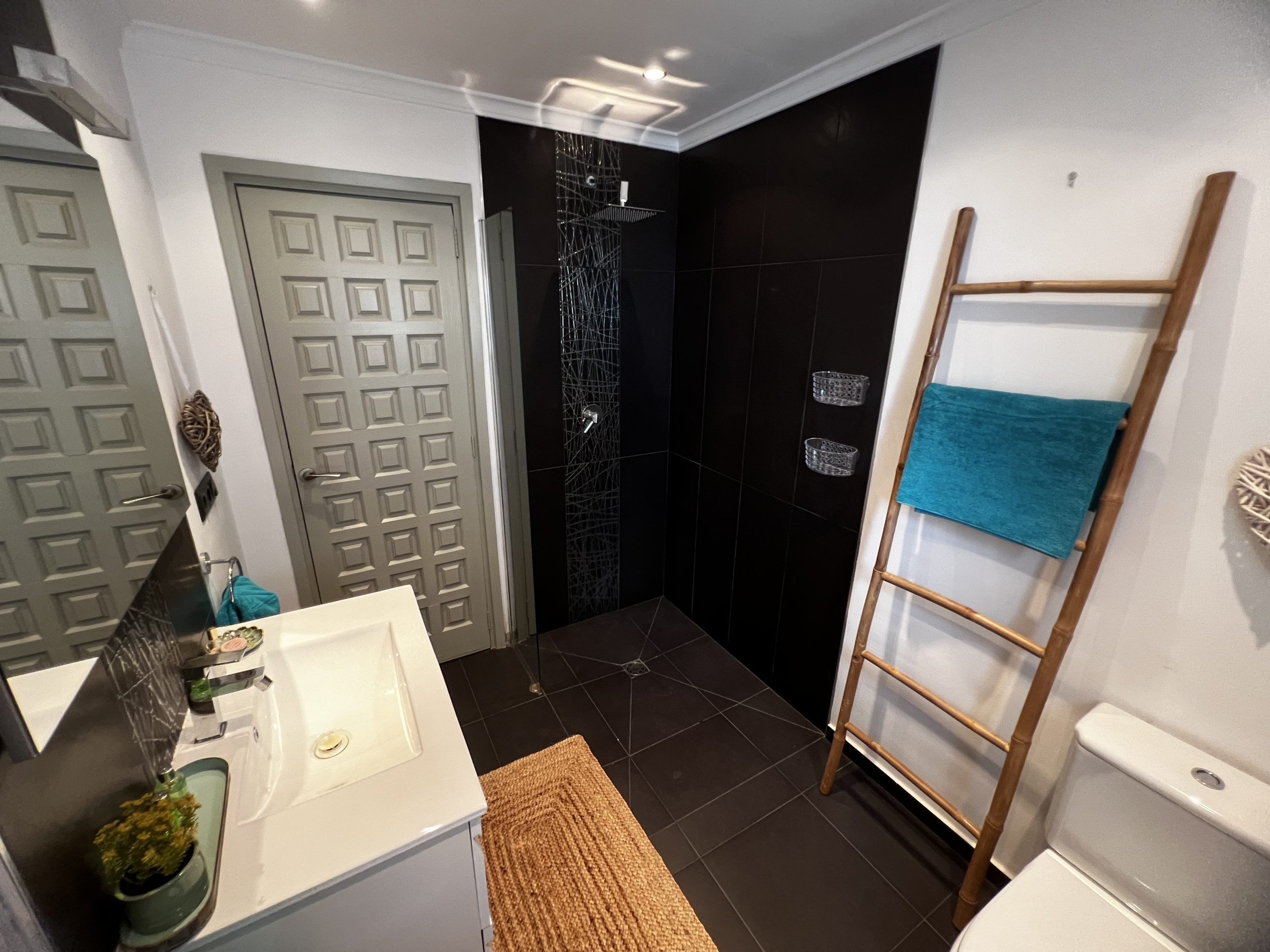 Le niveau inférieur offre un deuxième salon avec Smart TV, pour plus d'intimité. Il comprend deux chambres supplémentaires, une salle de bain moderne avec douche, lavabo et WC, ainsi qu'une cuisine et un coin salon, créant un espace indépendant idéal pour les familles voyageant ensemble. Les deux niveaux disposent d'entrées séparées pour plus de confort et de praticité.