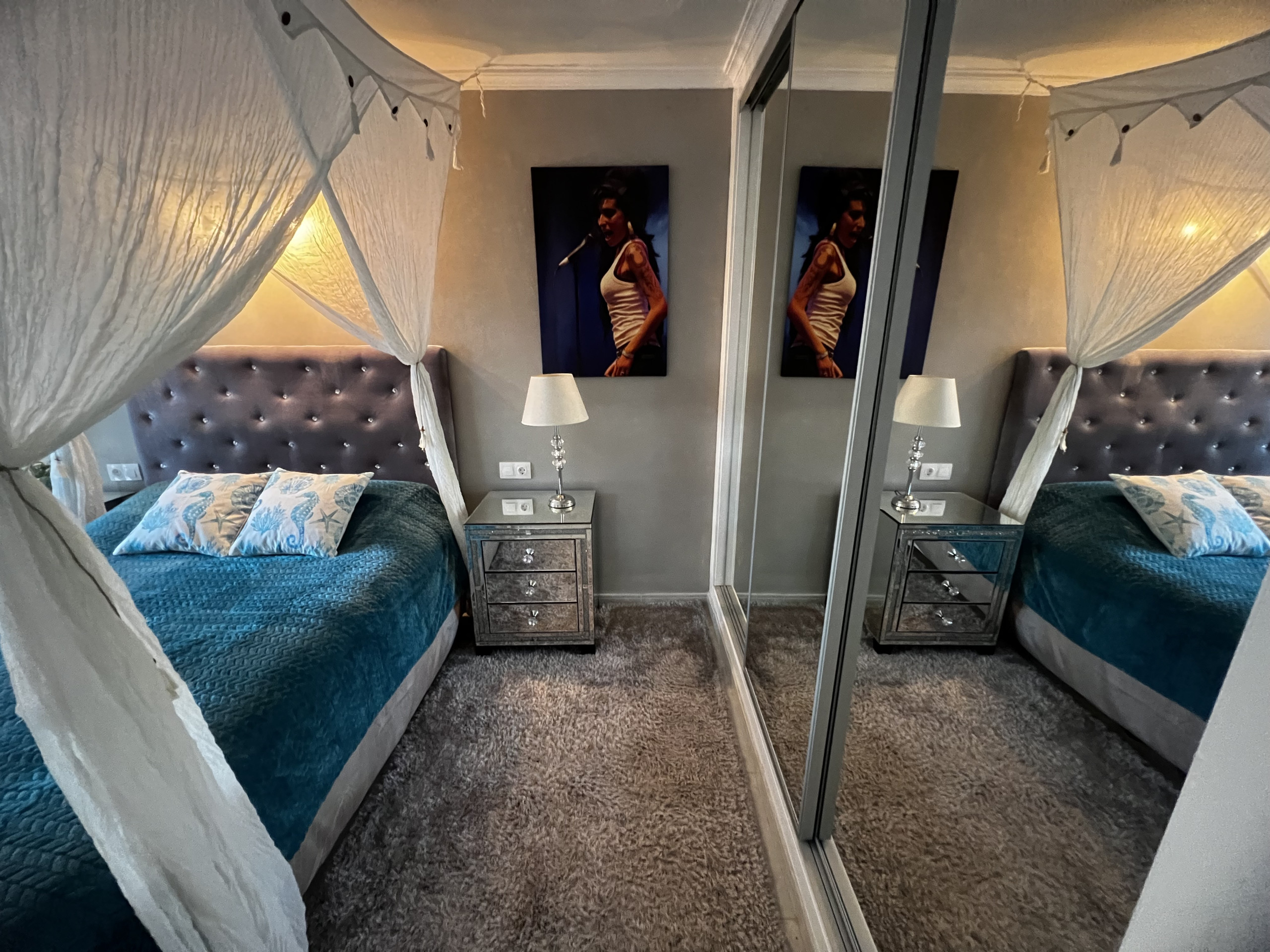 Le rez-de-chaussée comprend également deux chambres directement connectées, idéales pour les familles ou les amis proches. La première chambre est équipée d'un lit double confortable, de la climatisation, d'un espace de rangement et d'une télévision pour votre divertissement. La chambre attenante offre également un lit double. Une salle de bain bien équipée avec douche, lavabo et toilettes est idéalement située au bout du couloir.