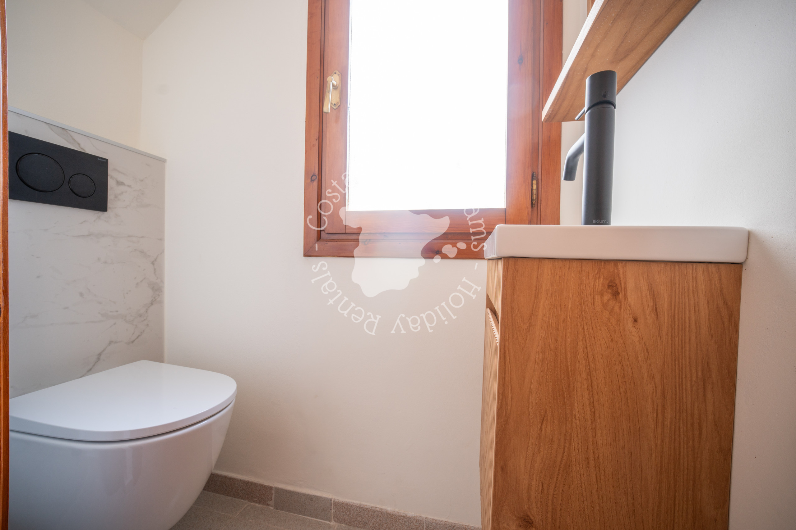 Upstairs, you’ll find two comfortable bedrooms, each with a double bed (with two individual mattresses), built-in wardrobes, and its own air conditioning unit capable of both cooling and heating. One of the bedrooms even offers a private balcony with a luxury lounge set and beautiful sea views. The modern bathroom includes a shower, sink, and toilet.