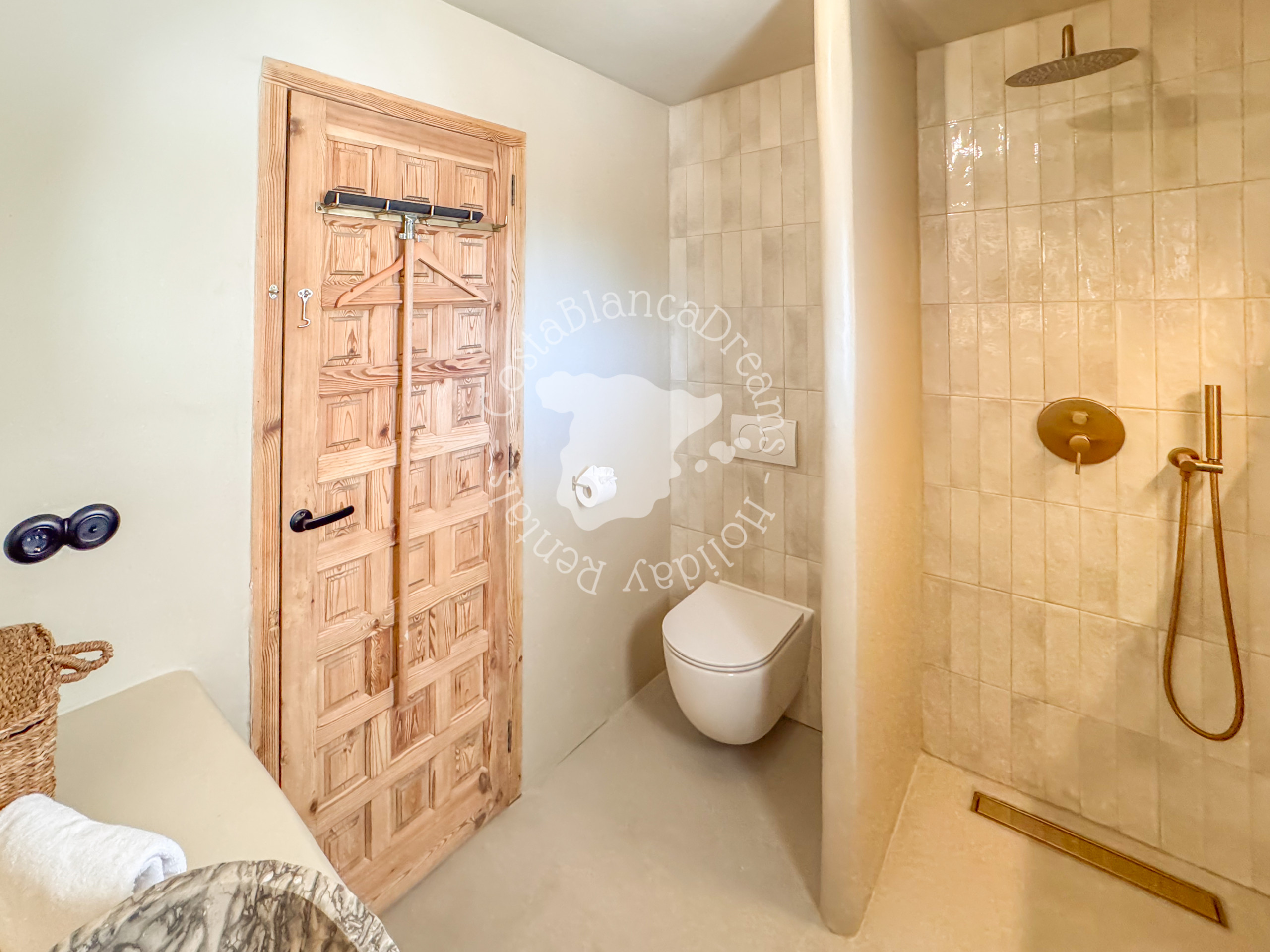 Designed for relaxed Mediterranean living, the exterior offers a true private paradise with a sparkling pool that can be heated upon request (see conditions below). It is surrounded by sun loungers and a shaded outdoor kitchen complete with a ‘The Bastard’ barbecue, sink and fridge—perfect for long summer evenings spent dining al fresco.