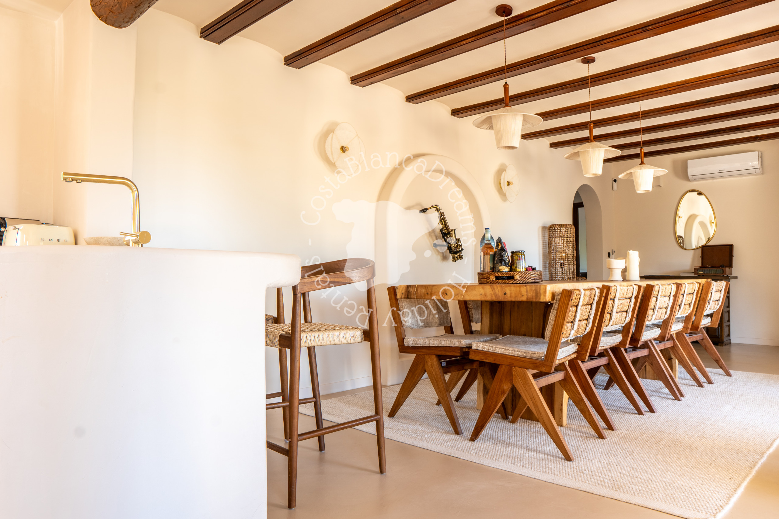 The beautiful kitchen, which overlooks the swimming pool, is fully furnished and equipped with all luxury Bosch equipment.