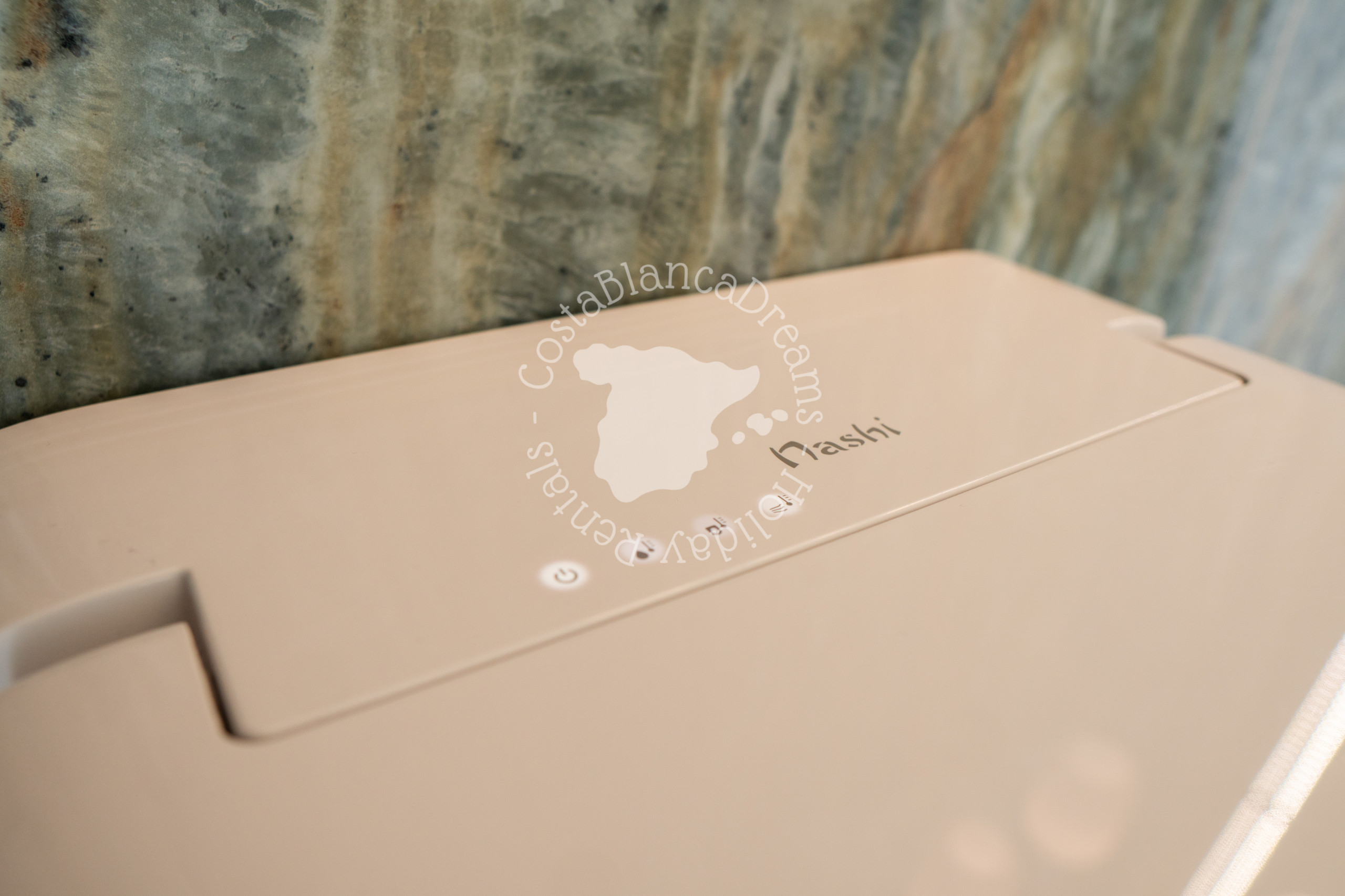 The villa boasts integrated air conditioning with individual room controls, electric shutters, and free fiber-optic Wi-Fi throughout. Additional amenities include a laundry room with an LG washing machine and dryer, and an electric car charger (which is free of charge).