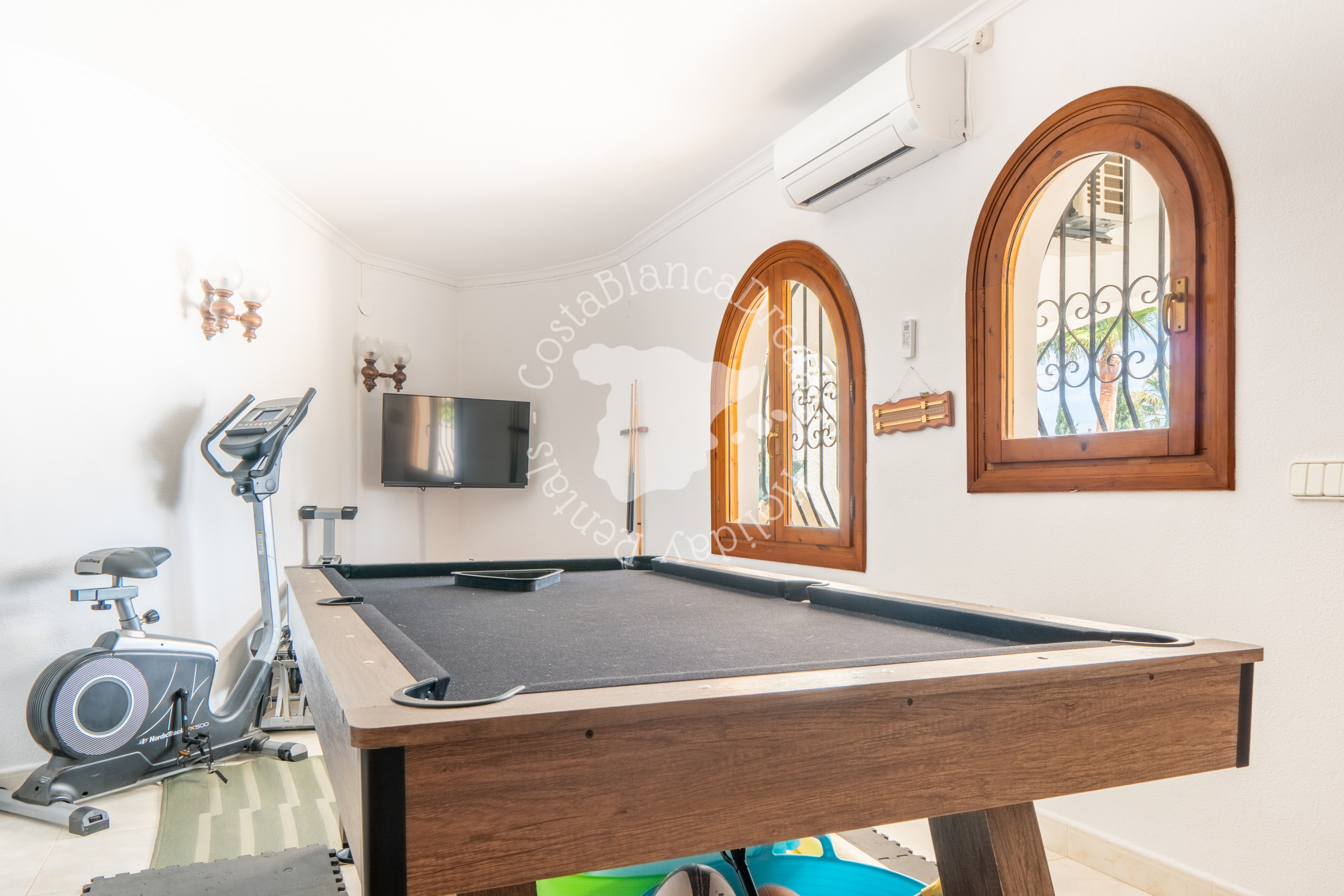 For extra entertainment, the villa offers a table tennis table and a game room equipped with a dartboard, football table, and pool table. Private parking is available on the property.